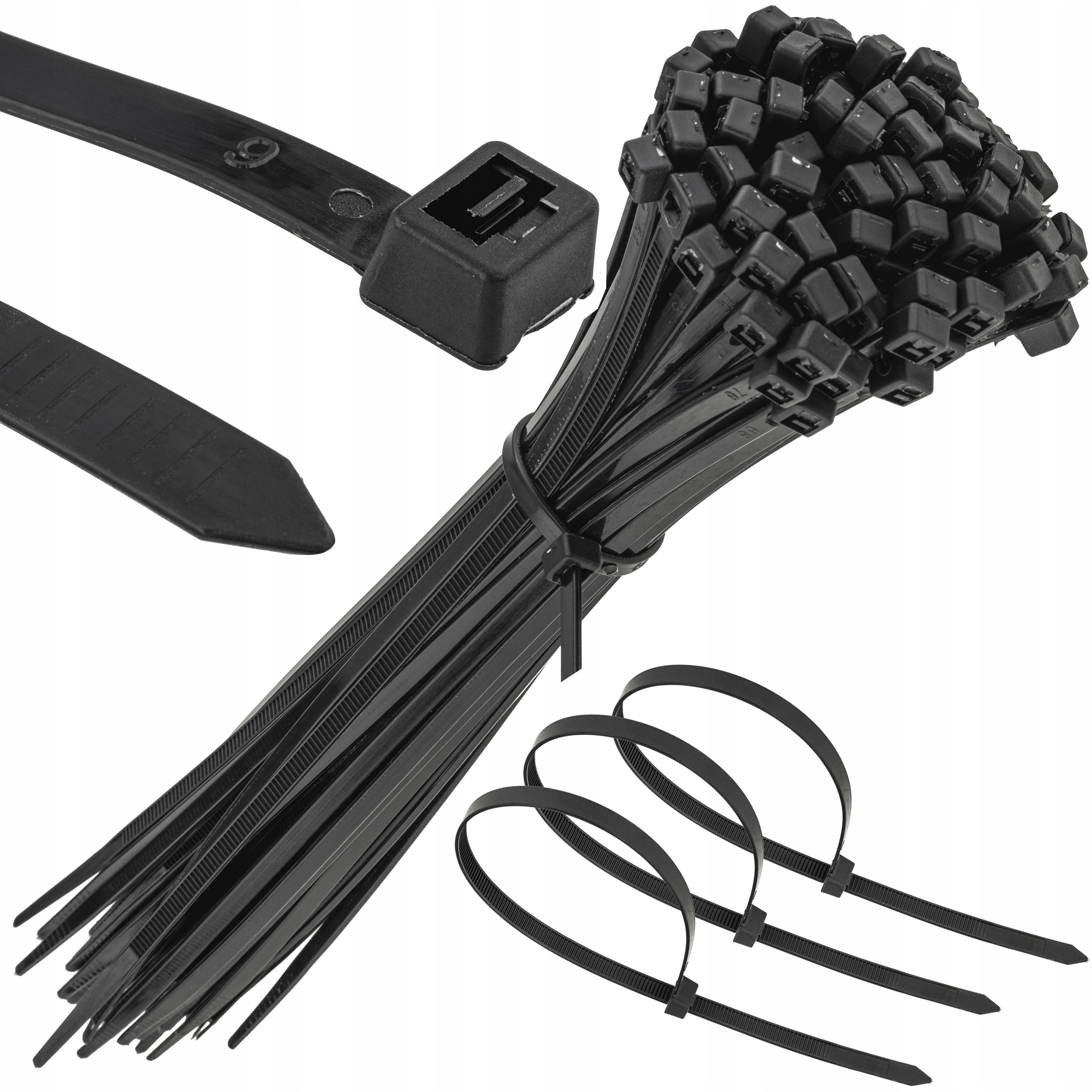 Opaski zaciskowe 3.6 x 200 mm, w kolorze czarnym, pakowane po 100 szt. Przeznaczone są do łączenia wiązek kabli elektrycznych, przewodów, rurek, węży lub też do szybkich doraźnych naprawach. Proste w montażu. Posiadają dużą odporność na zrywanie. Dostępne są w wielu rozmiarach oraz kolorach. Gęste ząbki na całej długości pozwalają na precyzyjne dopasowanie pętli opaski do rozmiaru wiązki. Opaski możemy zaciskać ręcznie lub za pomocą specjalnego przyrządu.
