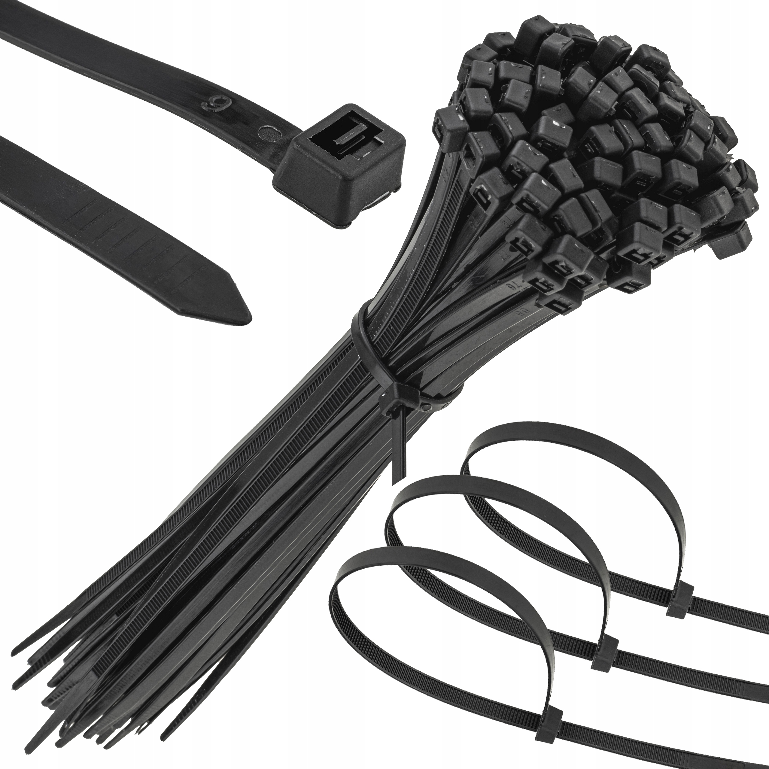 MOCNE OPASKI ZACISKOWE KABLOWE TRYTKI CZARNE TAŚMA 3.6X200MM 100SZT TRYTKI