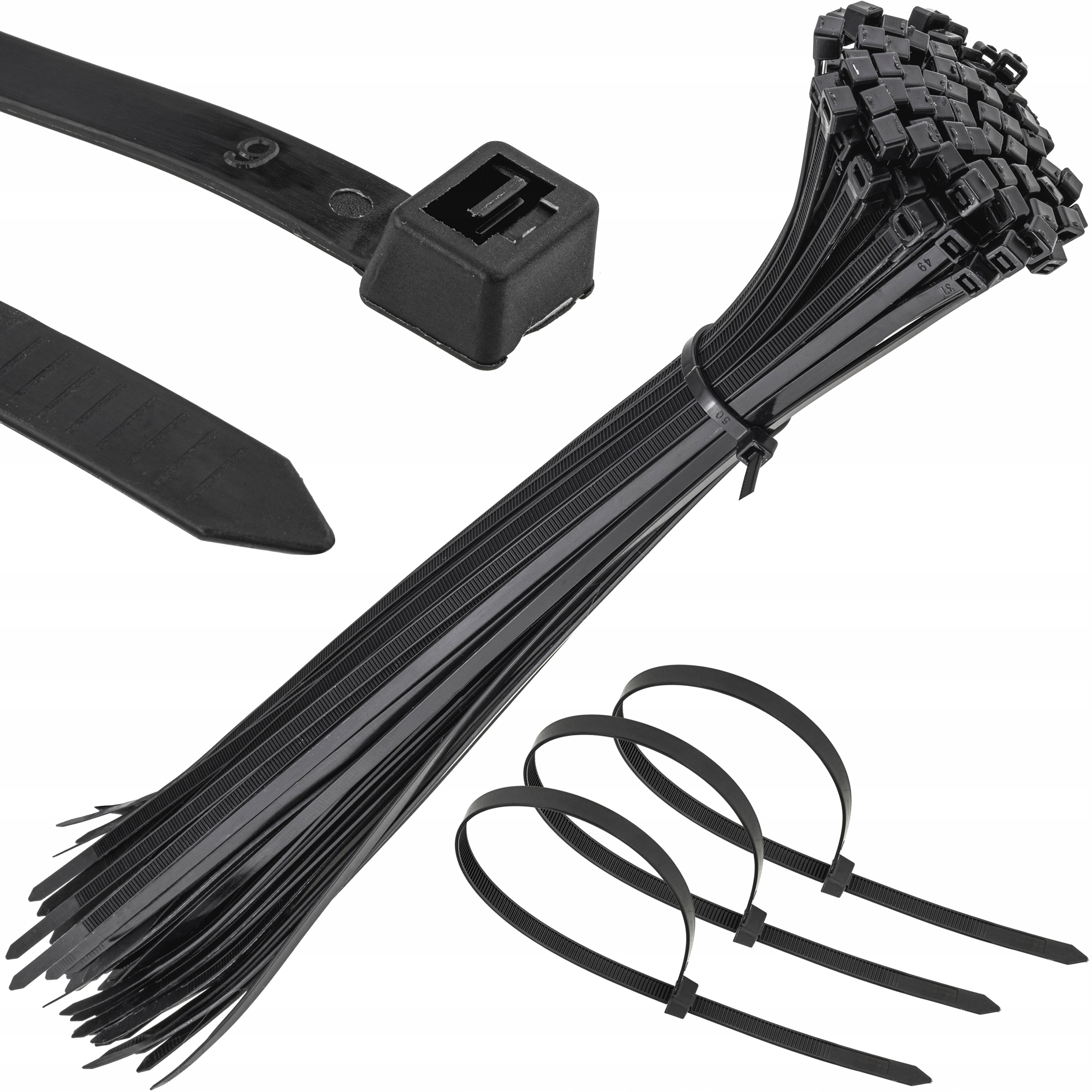 MOCNE OPASKI ZACISKOWE KABLOWE TRYTKI CZARNE TAŚMA 4.8X380MM 100SZT TRYTKI