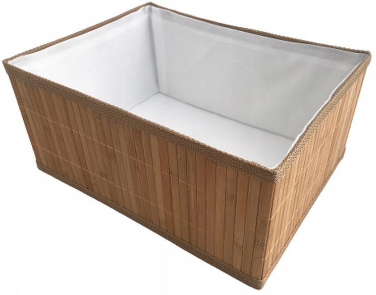 ✅ Bambusowy kosz wyłożony tkaniną.
