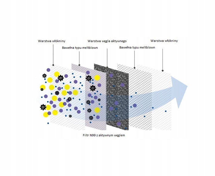 Tak zbudowany filtr zapobiega przenikaniu do płuc 99,9% pyłów, m.in. smogu, spalin, drobin pleśni czy kurzu, ale także bakterii, wirusów i innych drobnoustrojów. Jego konstrukcja umożliwia wyłapanie ponad 130 rodzajów groźnych dla zdrowia substancji.