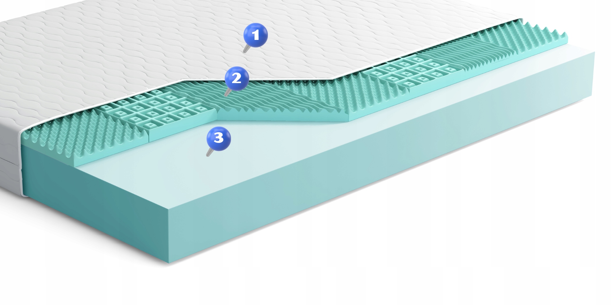 Powierzchnia pianki posiada wycięcia, które dzielą materac na 9 stref. Zapewnia to idealne dopasowanie do kształtu ciała oraz prawidłową cyrkulację powietrza. Pianka wysokoelastyczna HR jest niebywale trwała, sprężysta i odporna na odkształcenia. W porównaniu do pianki poliuretanowej, pianka HR szybciej odzyskuje pierwotny kształt. Oznacza to, że profilowana pianka HR szybciej reaguje na zmianę pozycji ciała w trakcie snu i spełnia funkcję masującą. Rzeczywisty kolor pianki - biały.