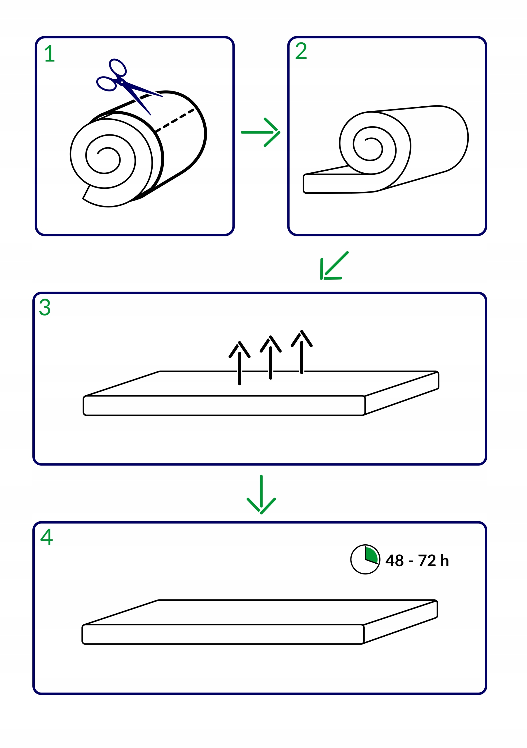Матрас будет упакован в вакууме и свернут. Чтобы правильно его распаковать, просим следуйте приведенным ниже советам