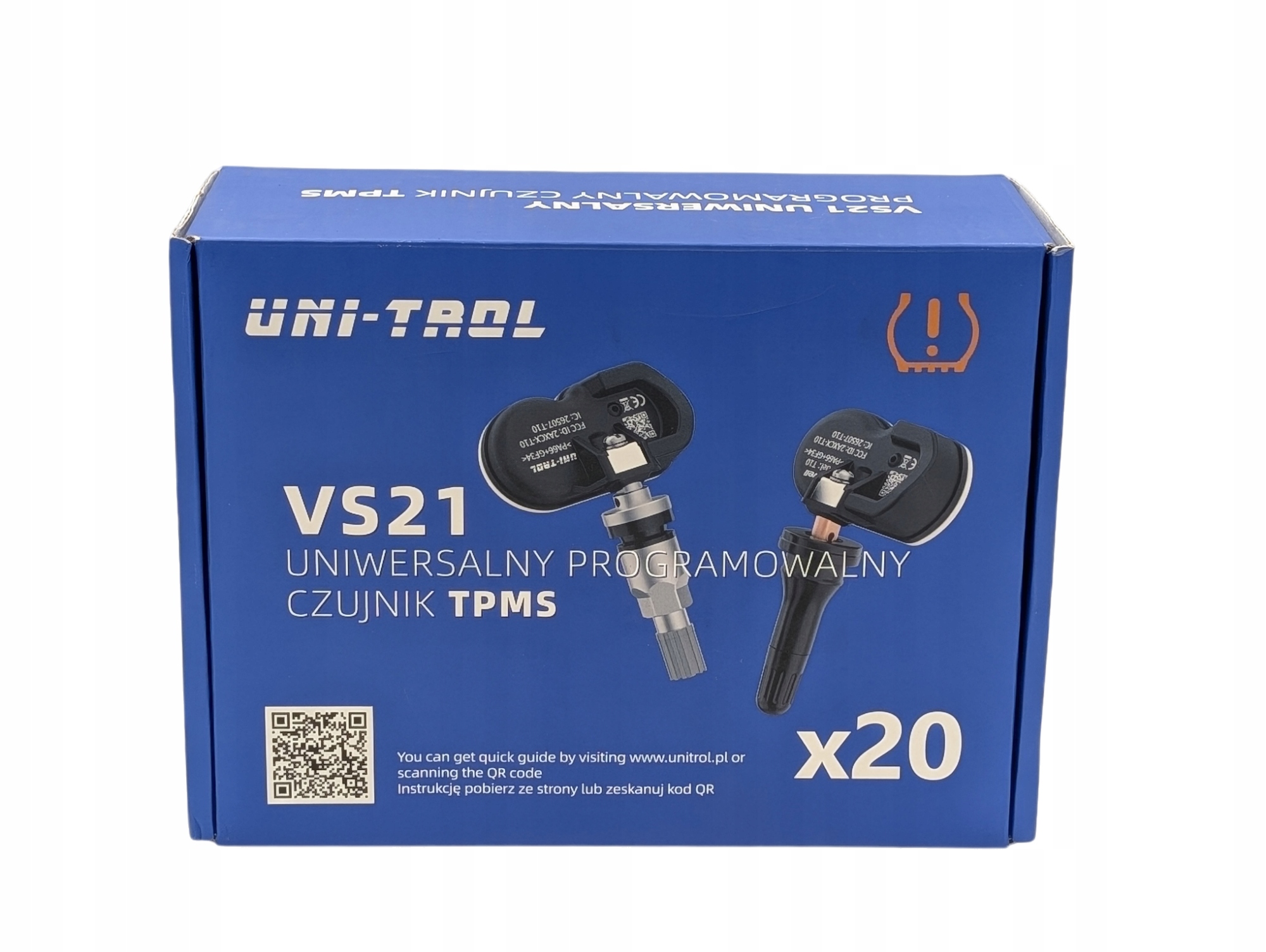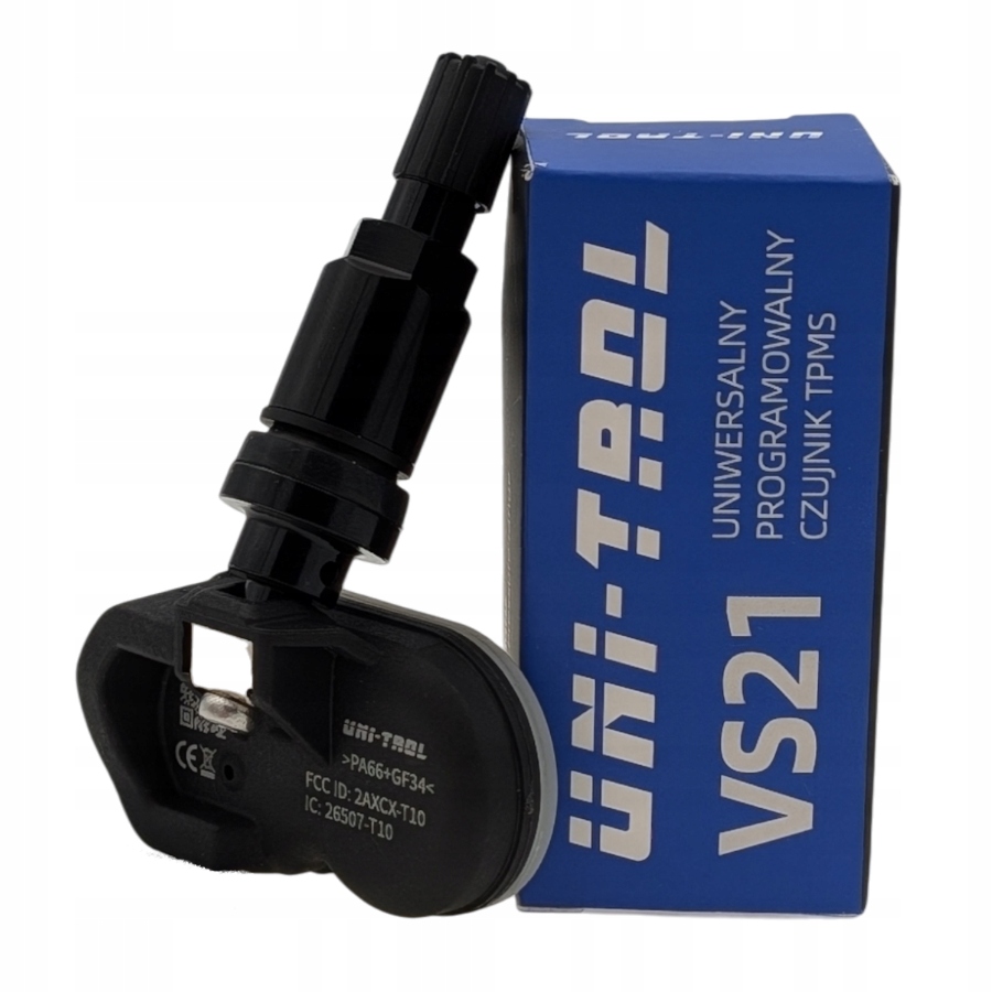 Uniwersalny programowalny czujnik TPMS Uni-Trol VS-21 to rozwiązanie pozwalające na zastąpienie dowolnego fabrycznego czujnika TPMS w samochodach osobowych i dostawczych. Dzięki szerokiemu pokryciu bazy danych sięgającej 98% może zostać wykorzystany w pojazdach europejskich, amerykańskich i azjatyckich. Przed montażem w pojeździe należy zaprogramować czujnik przy użyciu urządzeń Uni-Trol TPM 200 lub ADT 500. Do produkcji czujnika zostały wykorzystane komponenty najwyższej jakości a zastosowana bateria japońskiej firmy Maxell zapewnia długą żywotność. Czujnik wyposażony jest w zawór aluminiowy w kolorze czarnym a sposób mocowania zapewnia możliwość regulacji pochylenia zaworu.