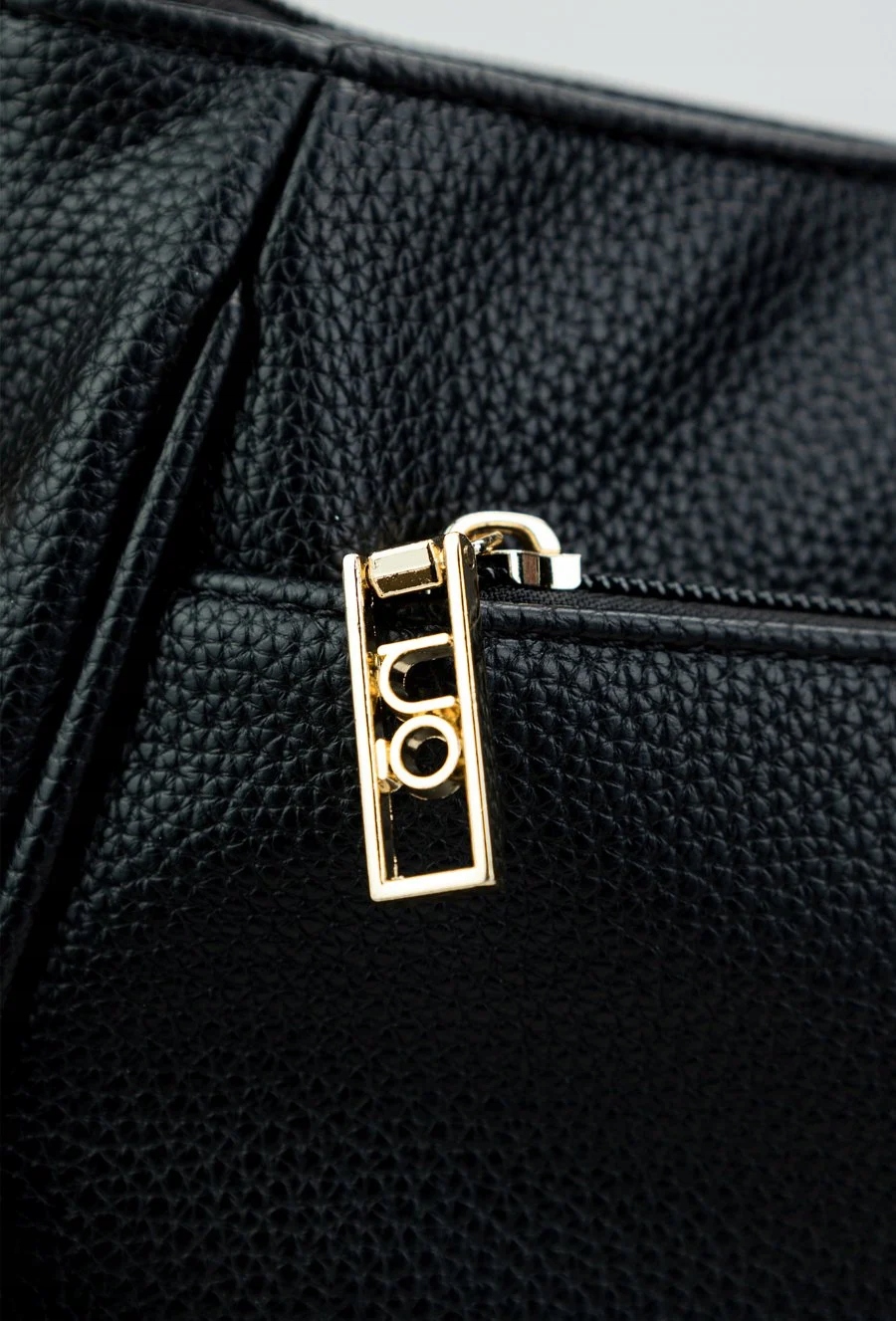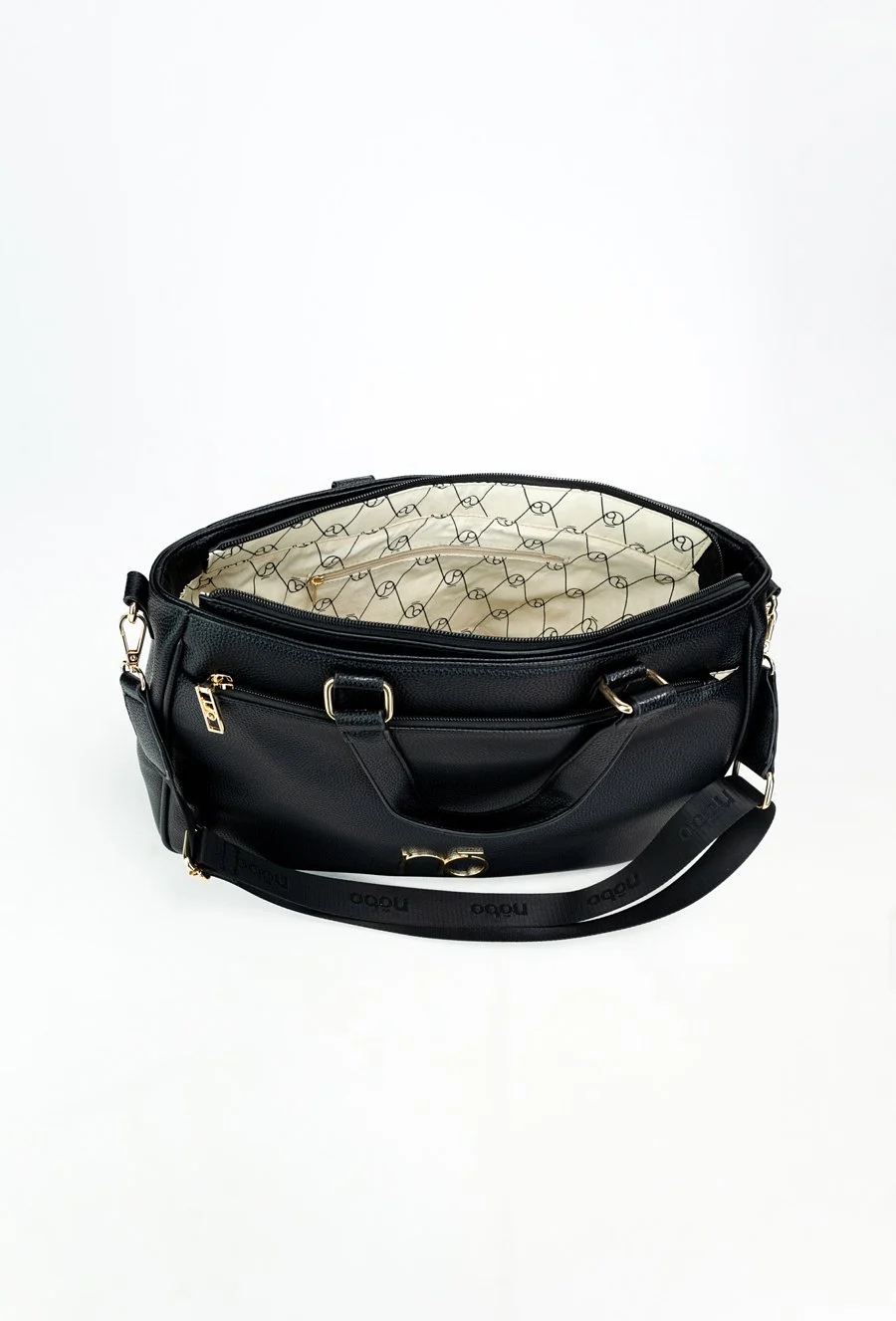 Duża torba damska z kolekcji biurowej, jednokomorowa, z dodatkowymi kieszonkami, w tym specjalną przegródką na laptopa. Torba zawieszona na rączkach, a w zestawie znajduje się także regulowany pasek. Z przodu i z tyłu torby znajdują się dodatkowe kieszonki zapinane na suwak, zapewniające wygodny dostęp do drobnych rzeczy.