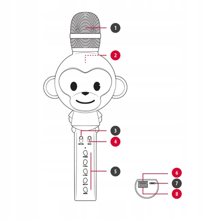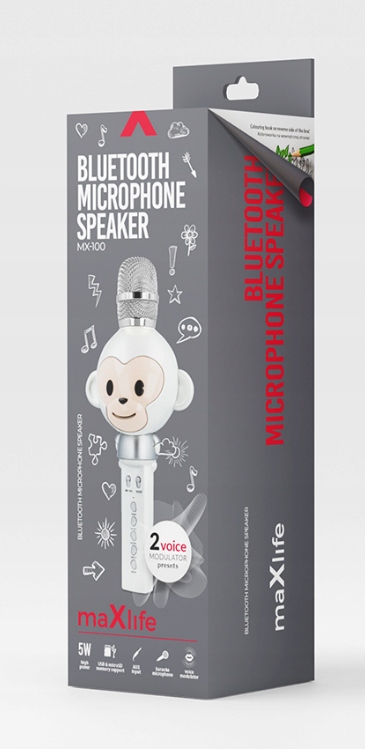 Bateria o pojemności 2000 mAh i bezpieczna dla dzieci moc głośnika 5 W zapewniają 8 godzin dobrej zabawy. Wysokiej jakości materiały zabezpieczają mikrofon przed przypadkowym zarysowaniami i pękaniem.