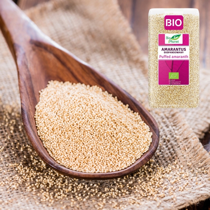 Bio Planet Amarantus ekspandowany BIO to ekologiczne ziarno amarantusa, znane z wysokiej wartości odżywczej. Produkt pochodzi z upraw ekologicznych, co gwarantuje brak pestycydów i sztucznych nawozów.