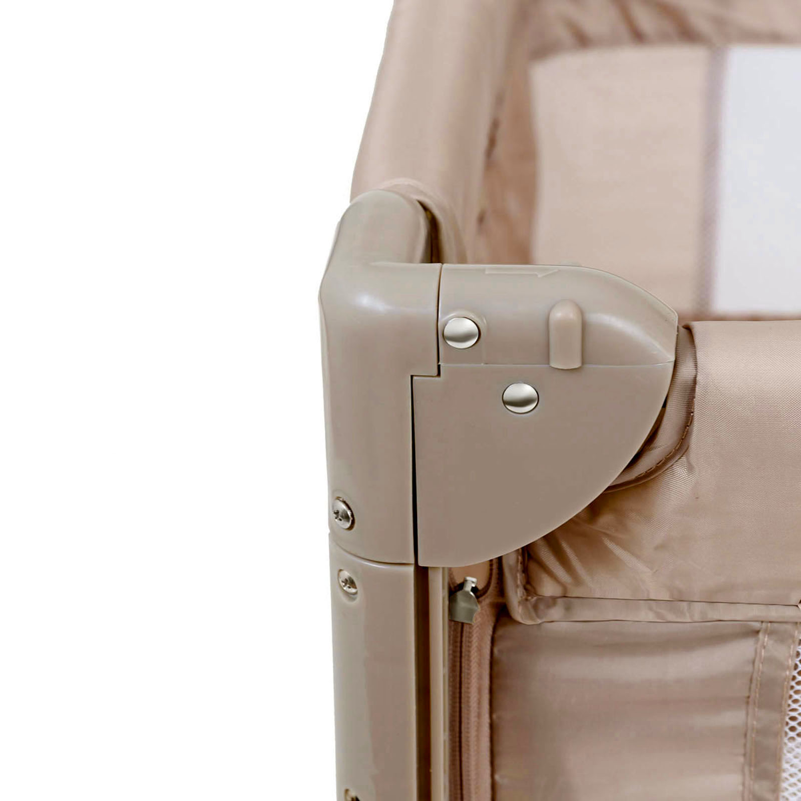 Двухуровневый вариант переносной кроватки с откидным боком в форма дополнительной кровати облегчает контроль сна и обеспечивает полный доступ к нашему малышу.