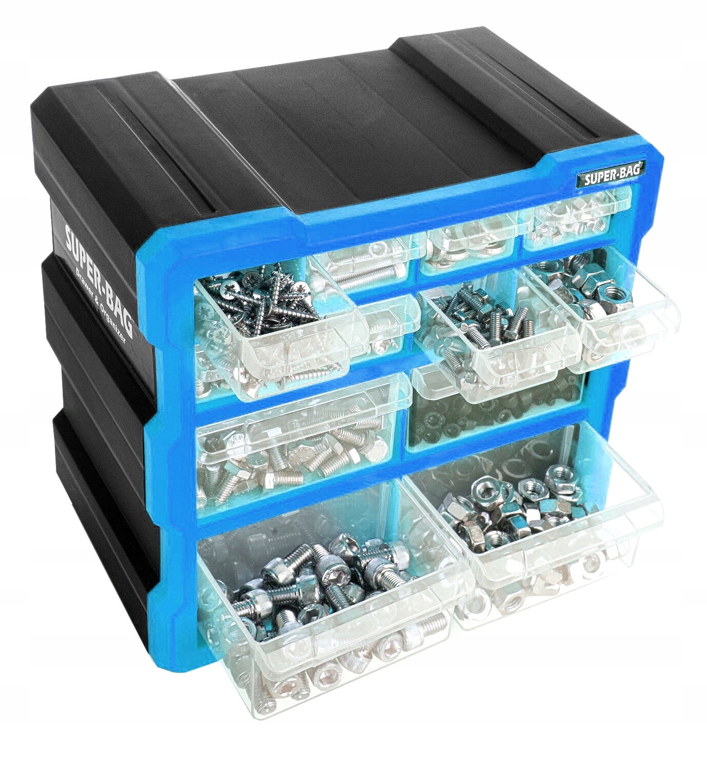 Organizer bez problemu pomieści śrubki, bity, podkładki, nici, czy biżuterię, także niewielkie narzędzia czy akcesoria wędkarskie.