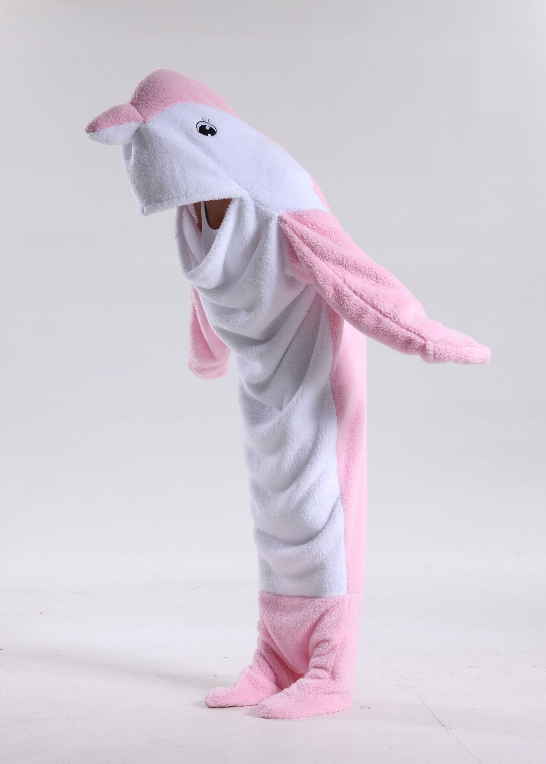 🌊 Zabawny i realistyczny design – Kostium posiada urocze detale, takie jak płetwy, ogon i wyraziste oczy delfina, które nadają mu wyjątkowego charakteru. Z przodu na kapturze znajduje się wygodne zapięcie, które ułatwia zakładanie i zdejmowanie.