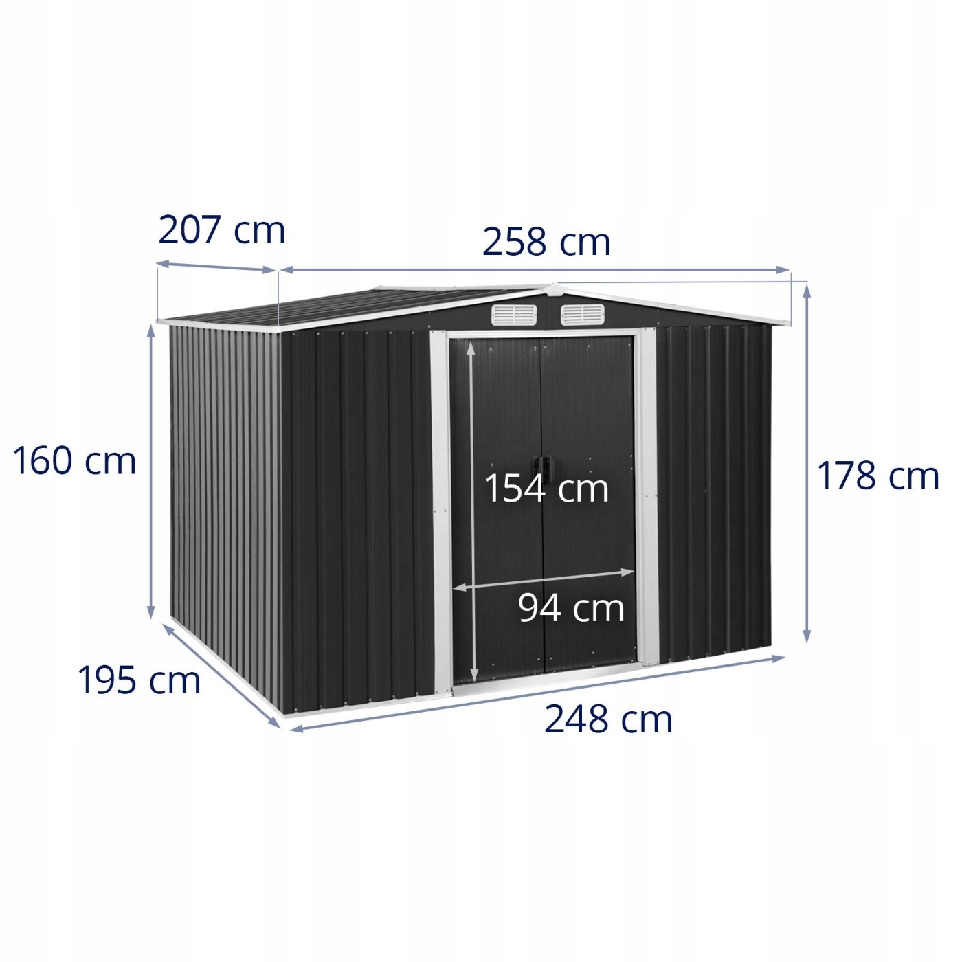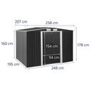 W metalowym domku narzędziowym marki Uniprodo bezpiecznie przechowasz sprzęt ogrodniczy, zabawki i narzędzia. Z wymiarami 206 x 179 x 258 cm szopa ogrodowa na narzędzia zapewnia wystarczająco dużo miejsca do przechowywania nawet mebli czy rowerów. Drzwi 96 x 154 cm umożliwiają wygodny dostęp i możesz je szybko i bezpiecznie zamknąć na kłódkę.