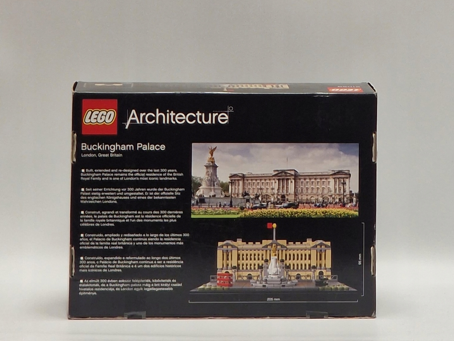 Zbuduj z klocków LEGO® model londyńskiej oficjalnej rezydencji monarchów. W tym wspaniałym modelu położono nacisk na ukazanie wschodniego skrzydła pałacu i jego słynnego balkonu, a także dziedzińca i bram. Model pokazuje też fragment arterii The Mall wraz z piętrowym autobusem, czarną taksówką i pomnikiem królowej Wiktorii. Ten ciekawy model pasuje do wnętrz domowych i biurowych, a jego złożenie dostarczy Ci satysfakcji. Stworzono go dla osób zainteresowanych architekturą, podróżami, historią i projektowaniem.