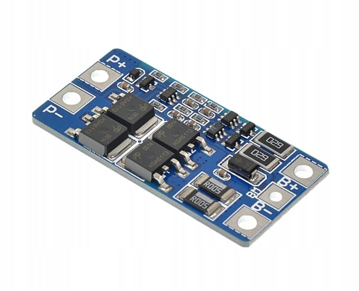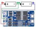 Moduł BMS do akumulatorów Li-Ion 18650 i podobnych. Obsługa 2 ogniw lub pakietu 2S o napięciu 7,2V – 8,4V (3,6V – 4,2V na ogniwo) z zabezpieczeniem.