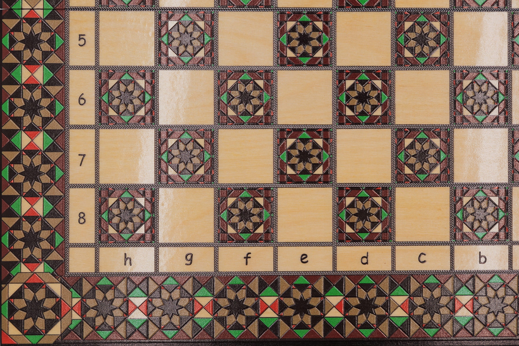 Wewnątrz kasety szachowej znajduje się wkładka pokryta flokiem, dzięki której każda figura i pionek są zabezpieczone je przed uszkodzeniami mechanicznymi.