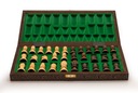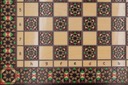 Rozłożona szachownica ma wymiary 35x35x2,5 cm, po zamknięciu stanowi pudełko, w którym można przechowywać figury szachowe.