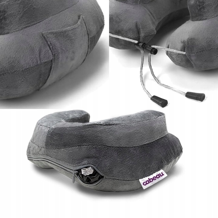 Poduszka posiada 2 poziomy, dzięki czemu głowa trzyma się stabilnie. Dodatkowo regulowany ściągacz i przełącznik obrotowy umożliwia idealne dopasowanie poduszki wokół szyi użytkownika.