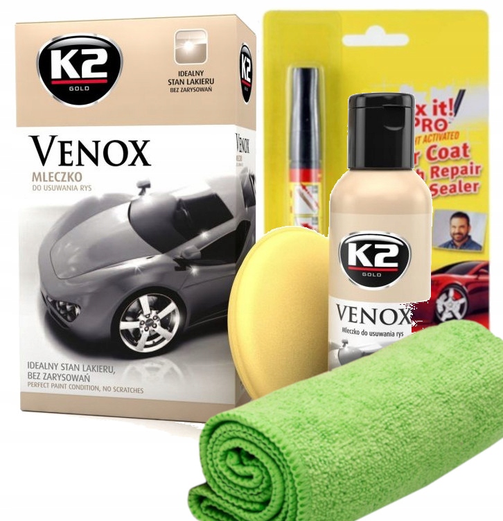 K2 VENOX to mleczko przeznaczone do skutecznego usuwania rys z powierzchni lakieru. Przywraca pierwotny blask trwale usuwając rysy, zamiast tymczasowo je maskować. Usunięte za pomocą K2 VENOX zarysowania nie powracają nawet po wielokrotnym myciu auta.