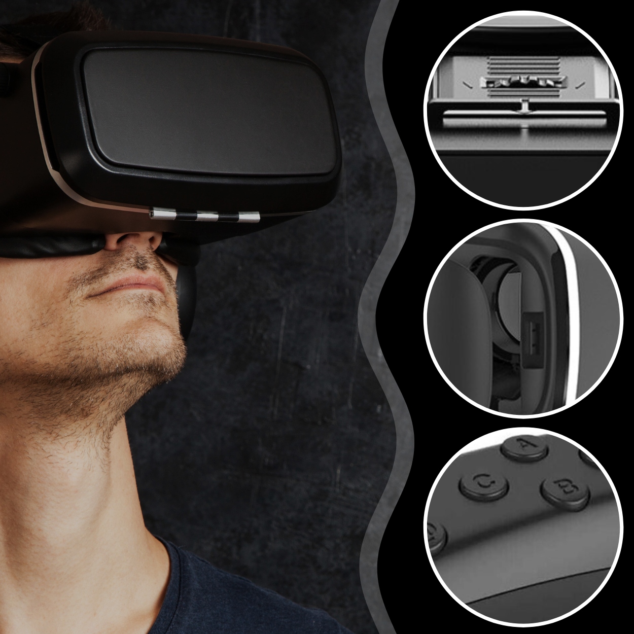 Uchwyt na telefon pasuje do urządzeń o maksymalnych wymiarach 80 mm x 160 mm, co oznacza, że zmieścisz tam niemal każdy smartfon dostępny na rynku. Boczne otwory umożliwiają podłączenie ładowarki lub słuchawek podczas użytkowania gogli, dzięki czemu możesz w pełni cieszyć się wirtualną rzeczywistością bez przerw.