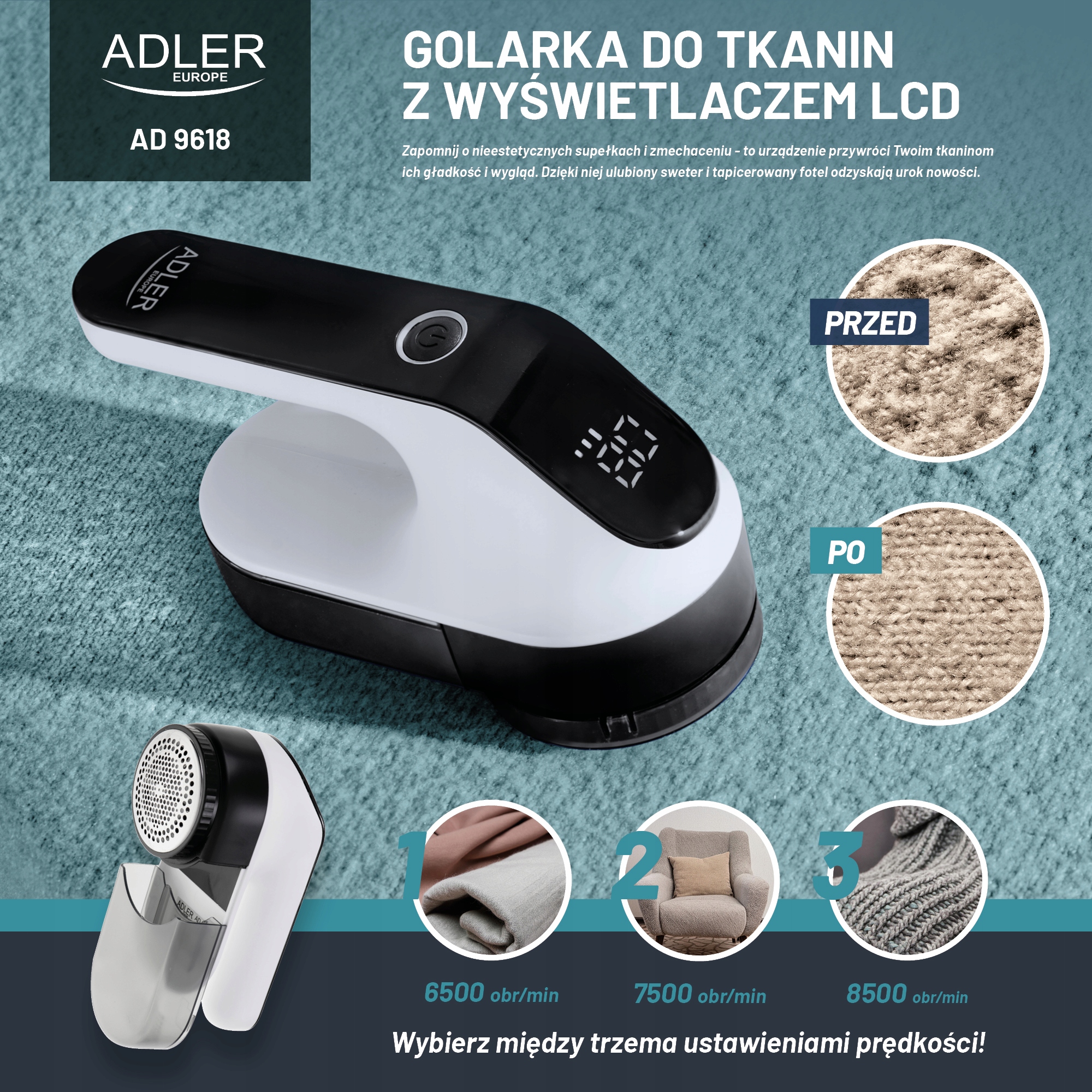 Golarka do ubrań marki Adler to urządzenie, które zostało zaprojektowane w taki sposób, aby w pełni ułatwić użytkowanie i zapewnić bezpieczeństwo. Niezależnie od rodzaju tkaniny, bardzo dobrze czyści ze zmechaconych kulek oraz swobodnymi ruchami porusza się po tkaninie.