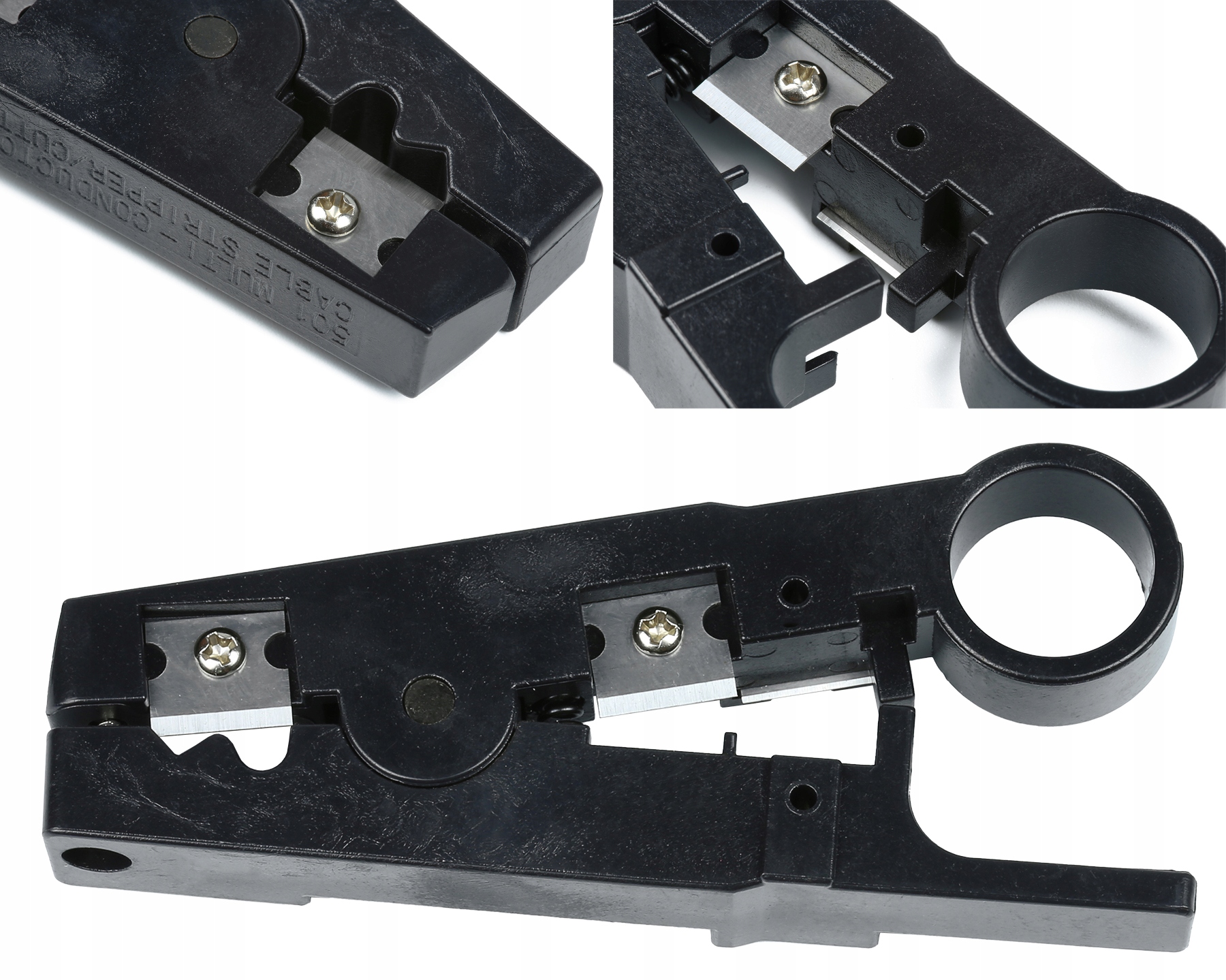 Простой, практичный инструмент, позволяющий снять внешнюю оболочку с проводов STP и UTP и зажим Вены в терминале 110. Идеально подходит для заработка витой пары в розетках.