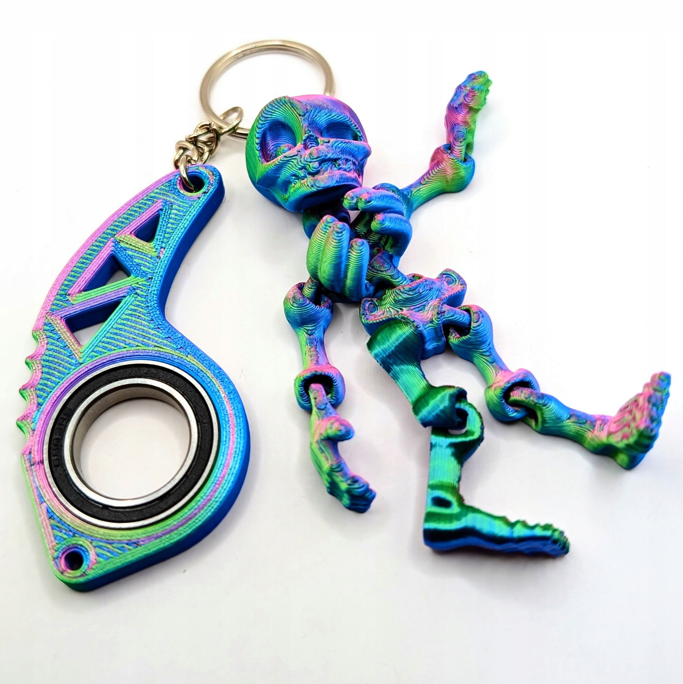 Brelok do Kluczy Keyspinner Keyrambit + Kościotrup to unikalny gadżet, który łączy funkcjonalność z oryginalnym designem. Wykonany w technologii druku 3D z materiału PLA, brelok w kolorze multikolor jest trwały, ekologiczny i przyjazny dla środowiska. Keyspinner posiada wklejone łożysko, co umożliwia płynne obracanie, a dodatkowy detal w postaci kościotrupa nadaje brelokowi wyjątkowy, charakterystyczny wygląd.