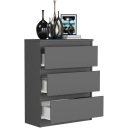 Nowoczesna komoda z linii MODERN, stworzony dla ludzi, którzy cenią sobie nowoczesny styl i elegancję.Odnowi wnętrze każdego salonu, biura czy pokoju młodzieżowego. Konstrukcja jest minimalistyczna, ale solidna i trwała. Ergonomiczne wymiary zapewniają swobodne umeblowanie pomieszczenia