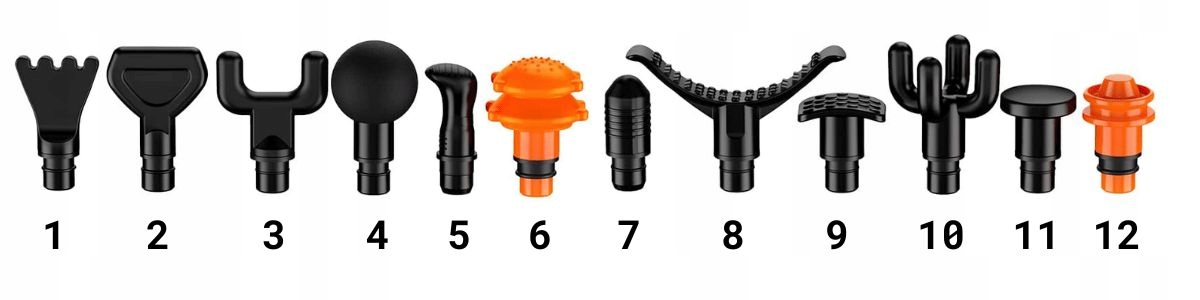 7. chłodząca - miękka, żelowa końcówka wspomagająca regenerację mięśni po treningu siłowym czy biegowym oraz walkę z bólami różnego pochodzenia. W celu przygotowania końcówki chłodzącej do pracy należy wcześniej umieścić ją na około godzinę do lodówki aby obniżyć jej temperaturę i móc przystąpić do chłodzącego masażu. Można stosować również bez wcześniejszego chłodzenia do masażu delikatnych części ciała.
