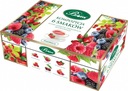 W szkatułce znajdziemy sześć różnych smaków herbatek owocowych: malinowa, wiśniowa, poziomkowa, żurawinowa, dzika róża, wieloowocowa.