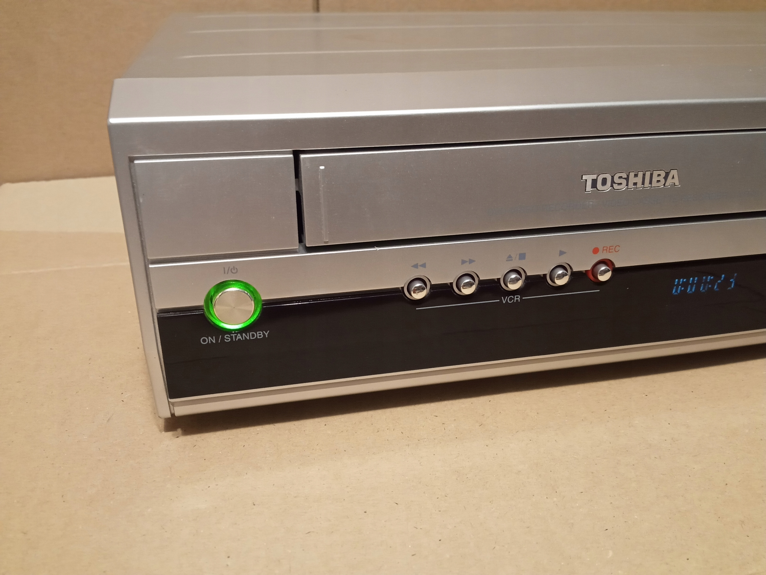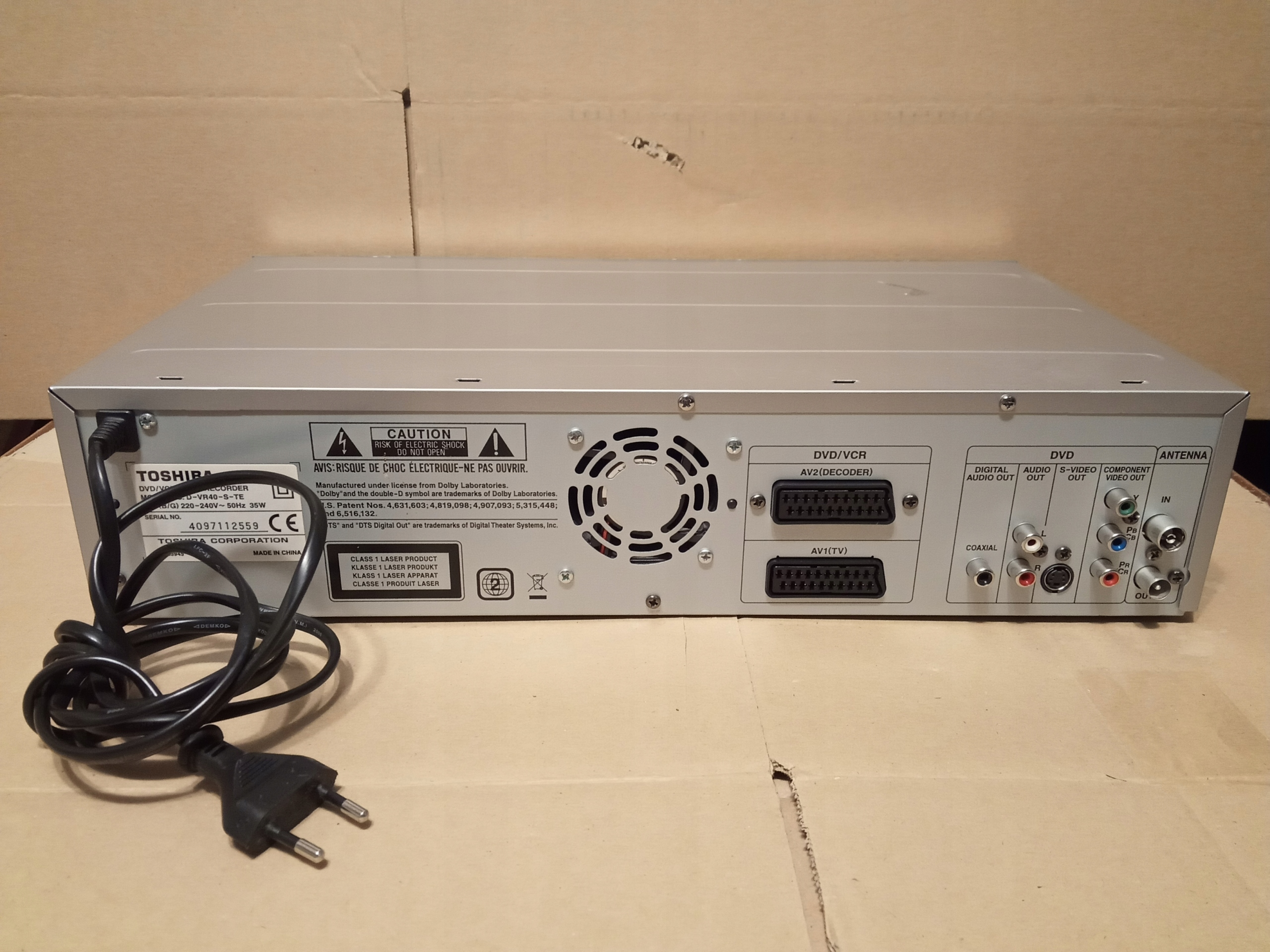 Combo : TOSHIBA D-VR40 bez pilota ( odtwarzał płyty ale przy próbie włożenia kasety VHS , przyjął i oddał i teraz po chwili wyłącza się !! ) .