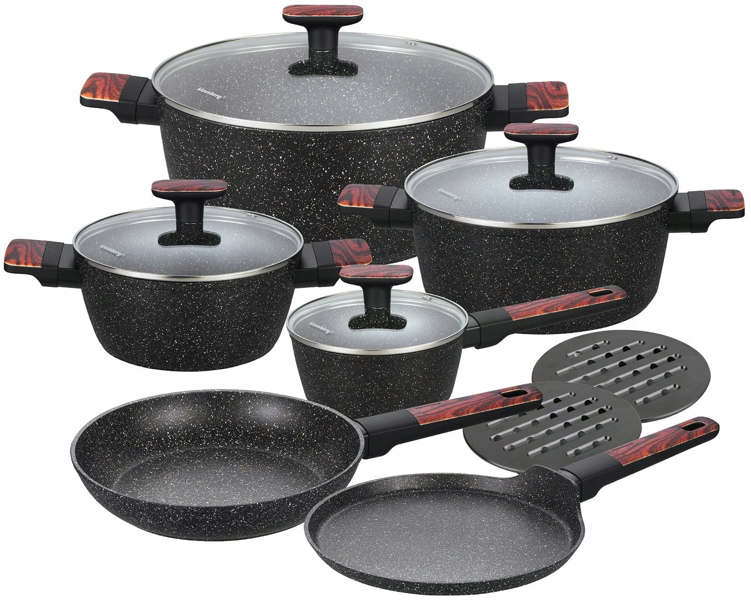 12-częściowy zestaw garnków i patelni z marmurkową powłoką nieprzywierającą marki KLAUSBERG.