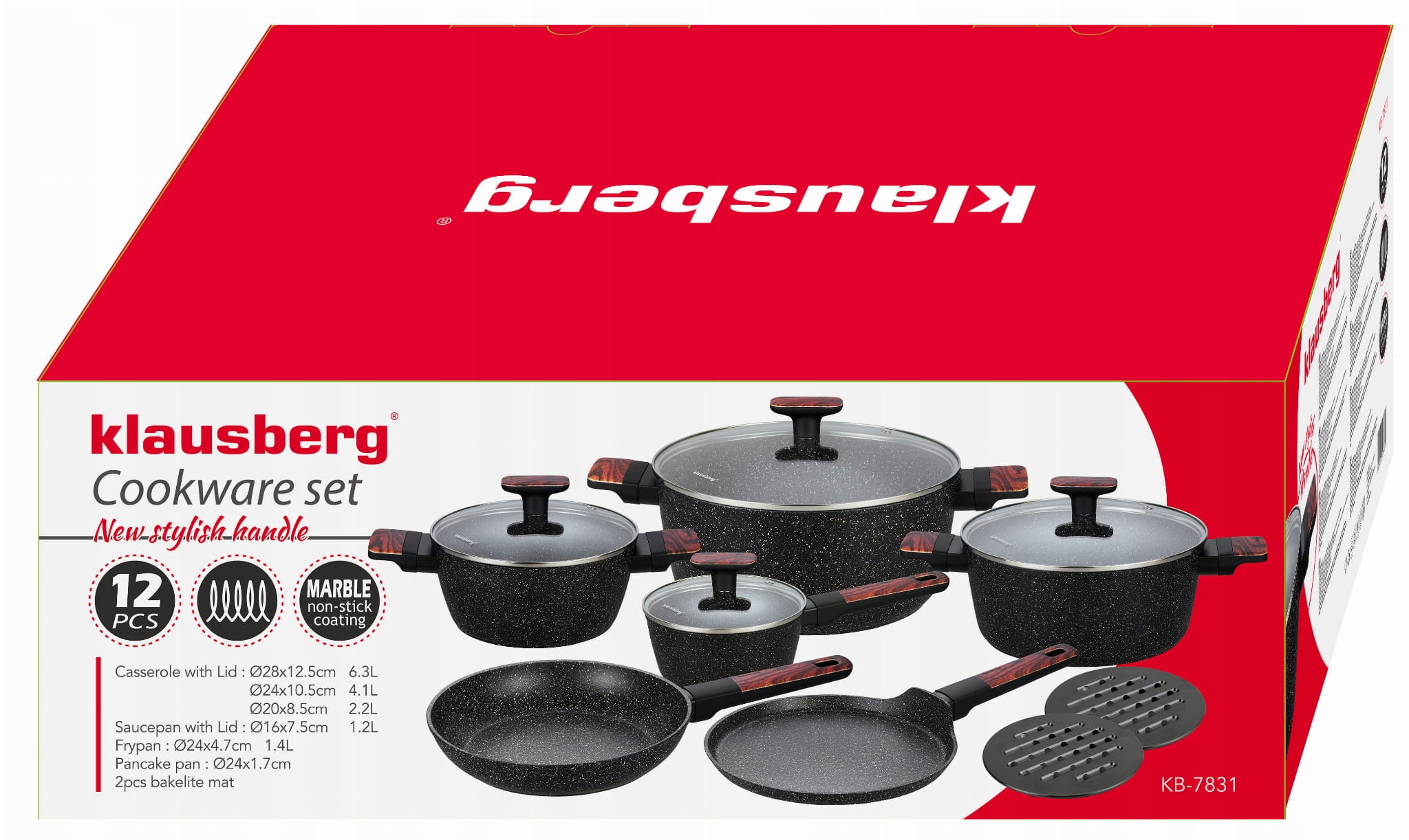 Komplet garnków z marmurkową powłoką nieprzywierającą 12-ele KLAUSBERG KB-7831