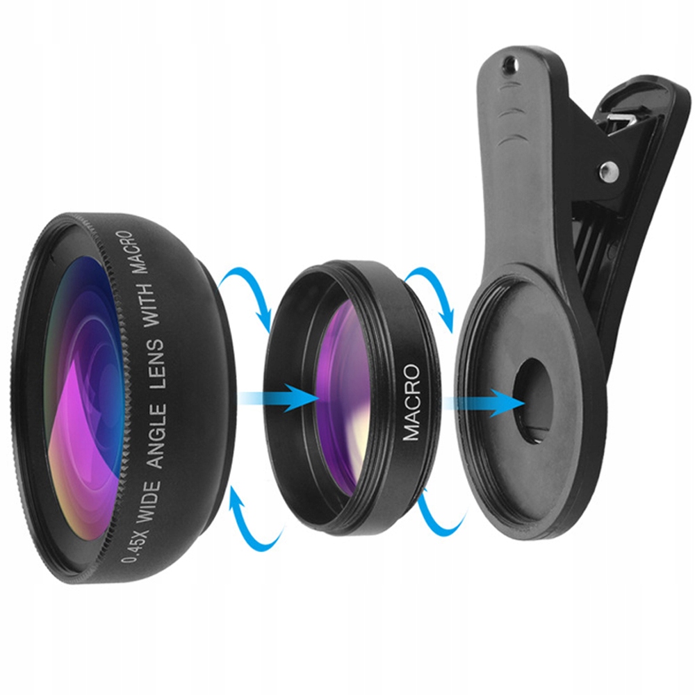 Obiektywy są ze sobą skręcane i w ten sam sposób mocuje się je do uchwytu, wystarczy przykręcić soczewki a następnie zamocować klips na telefonie w odpowiednim miejscu - nieważne czy chcesz korzystać z przedniego aparatu czy tylnego!