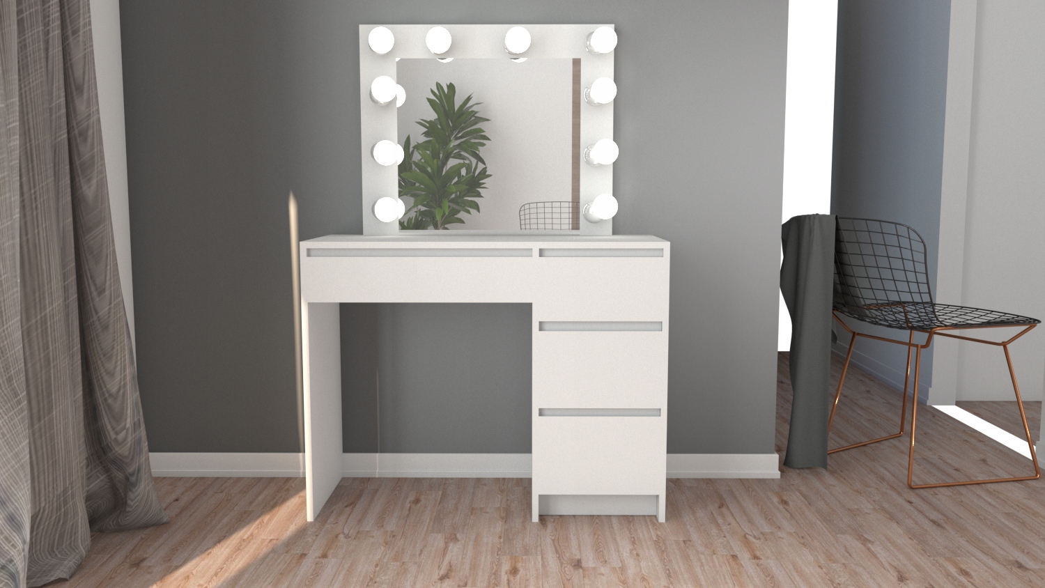 Освещение обеспечит комфорт использования туалетного столика. Будет яркий и нейтральный цвет. Пожалуйста, будьте уверены, что это лучшая модель туалетного столика в нашем предложение.