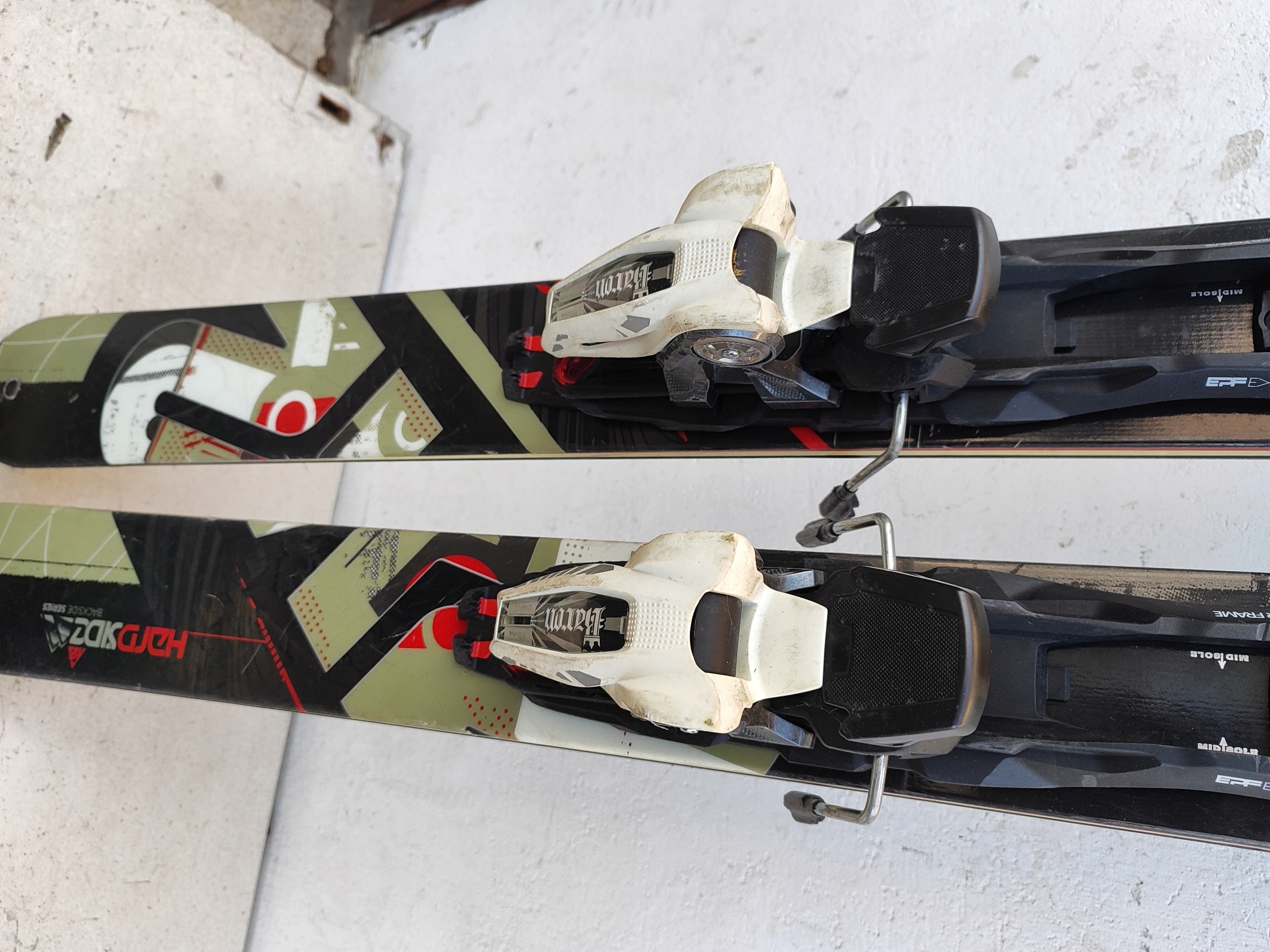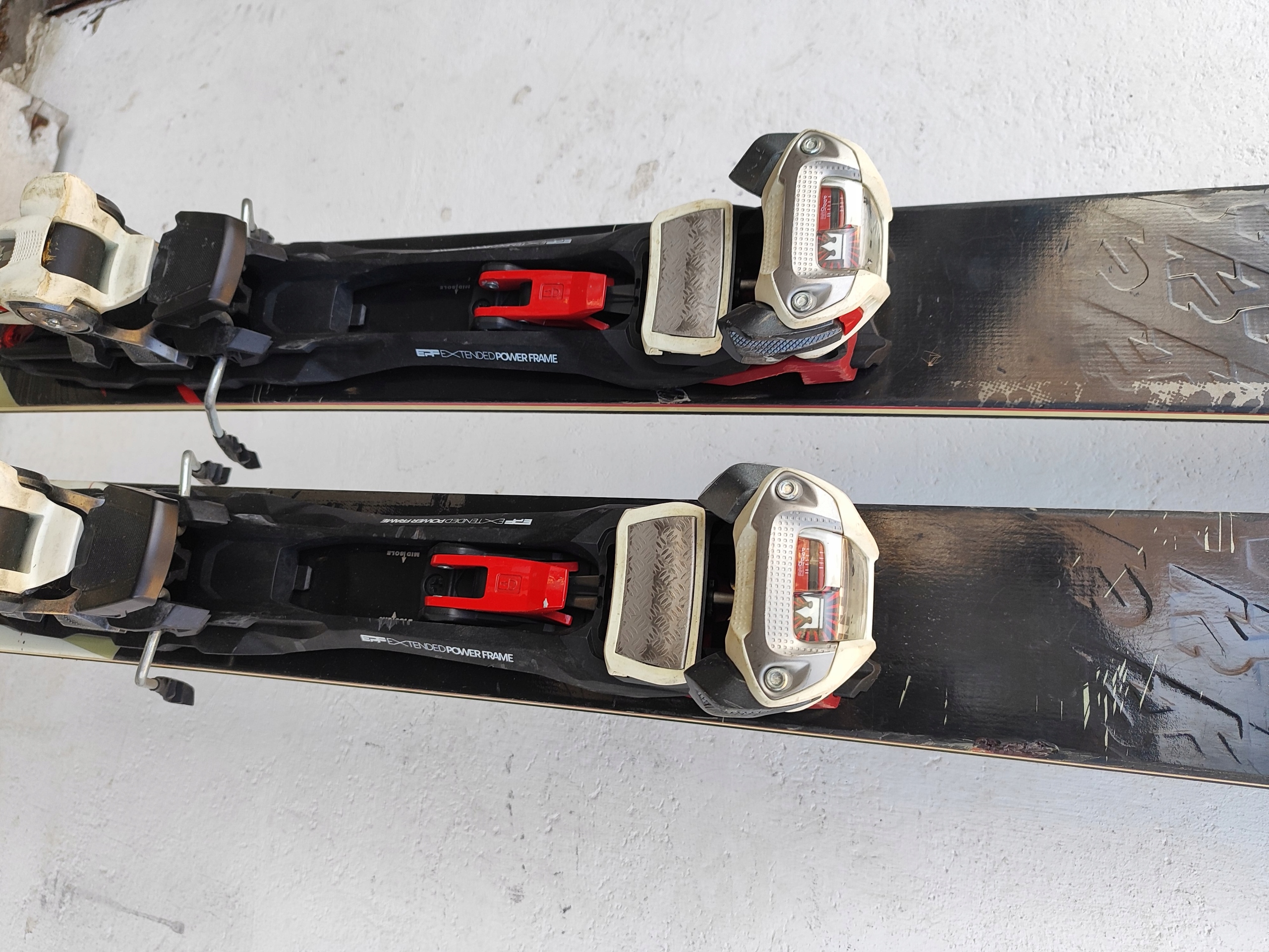 Stan DB - Narty posiadają normalne ślady użytkowania otarcia, nacięcia i ślady po ostrzeniach w serwisie