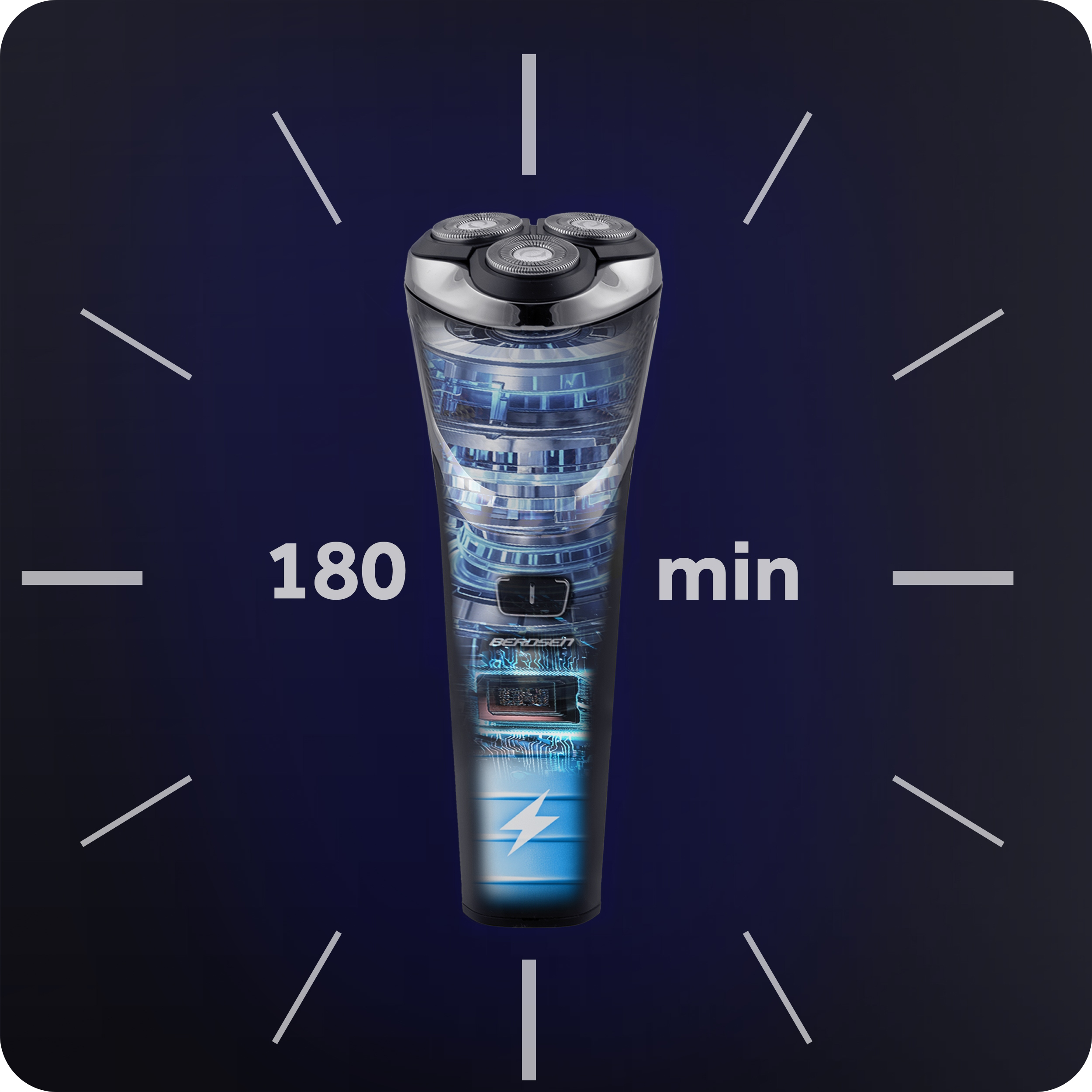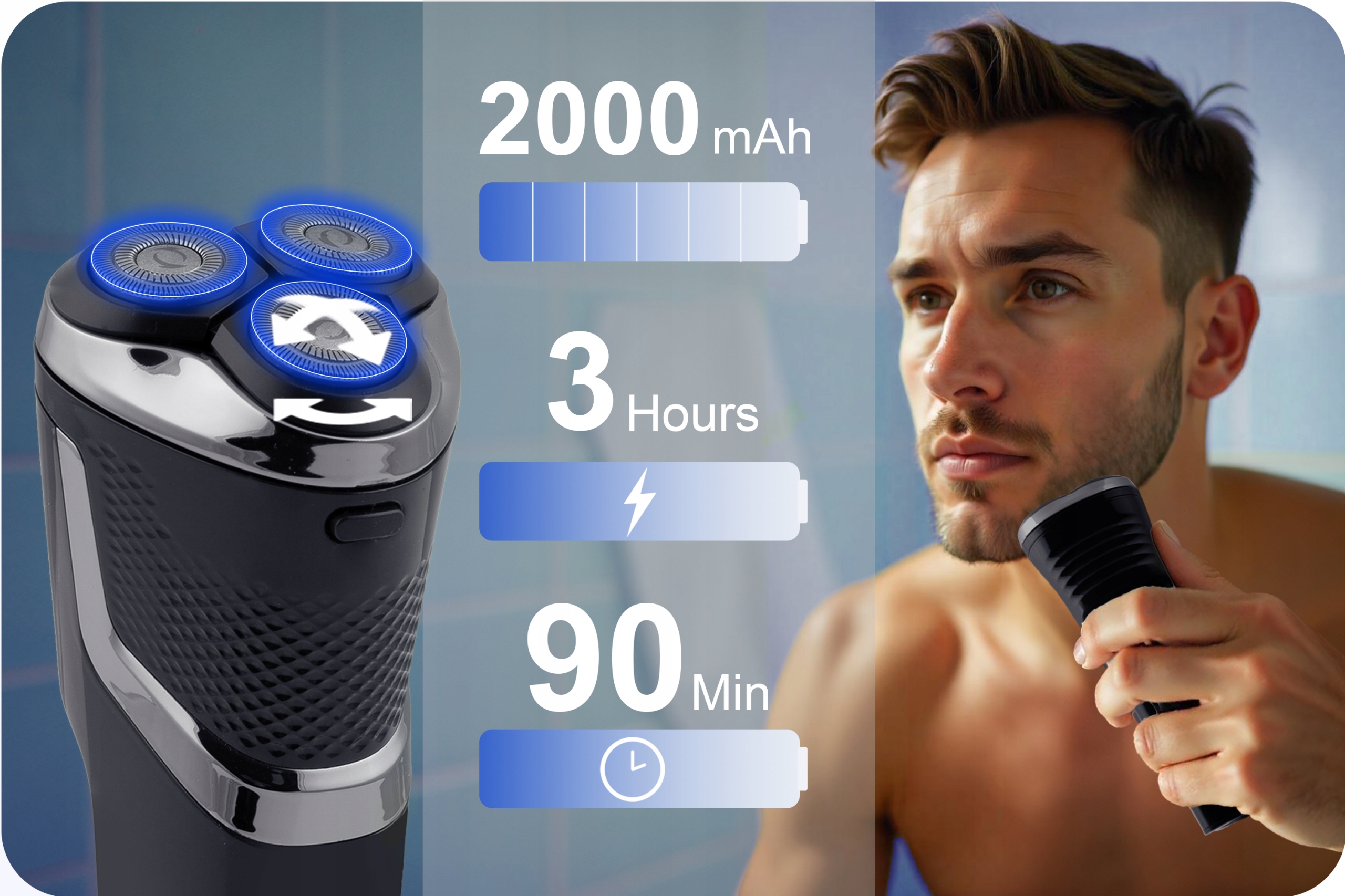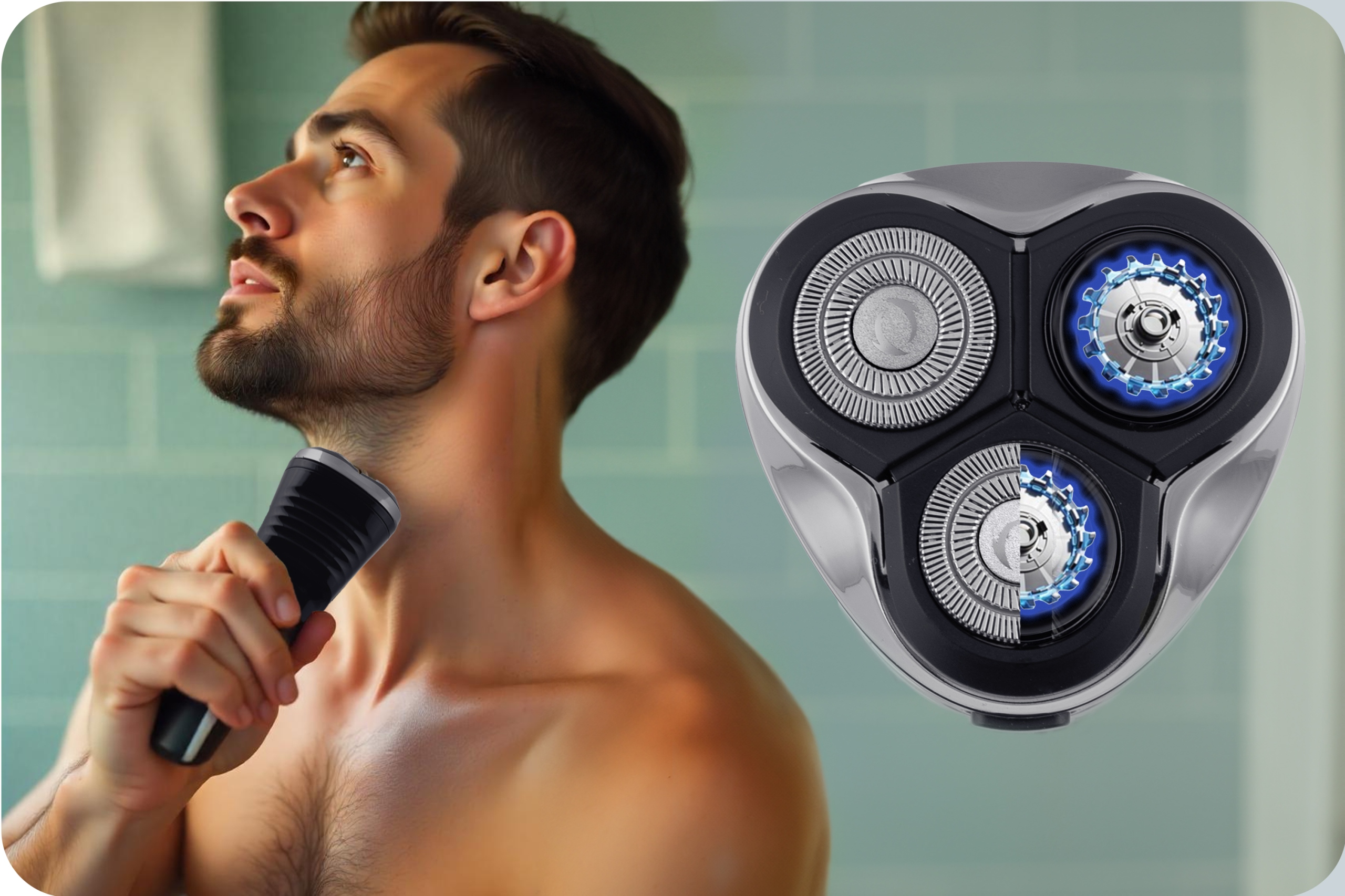 Głowica rotacyjna — zapewnia wygodne golenie dzięki obrotowym ostrzom, które dostosowują się do kształtu twarzy.