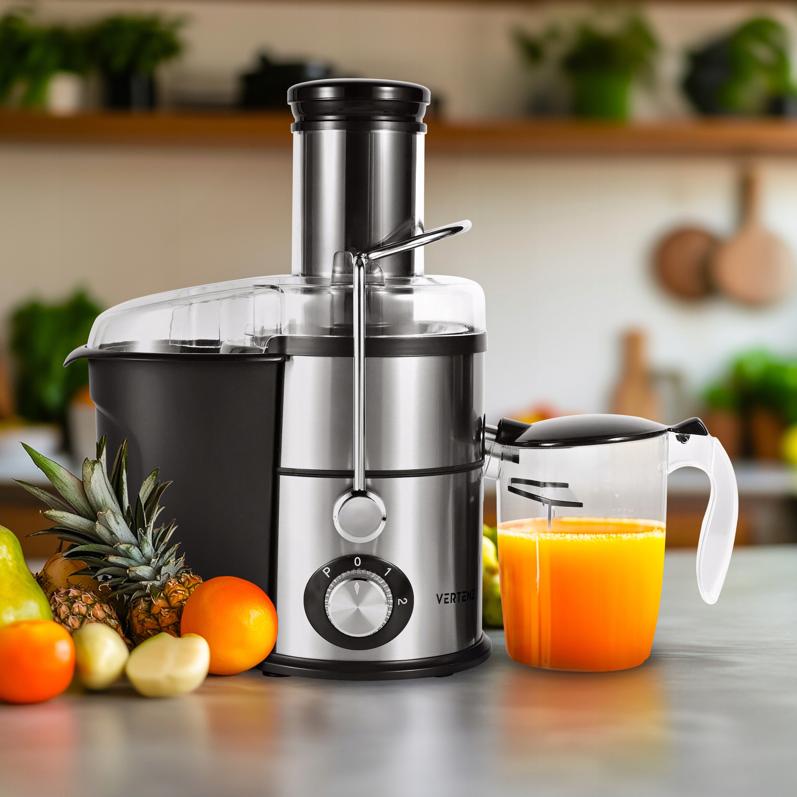 Do sokowirówki dołączony jest funkcjonalny zestaw akcesoriów, w tym popychacz oraz dzbanek o pojemności 1 L z pokrywką , w którym możesz serwować sok. Dzięki pokrywie możesz przechowywać sok w lodówce, mając pewność, że zachowa świeżość i nie przejdzie zapachami innych produktów. Wbudowany separator piany pozwala uzyskać klarowny napój o idealnej konsystencji.