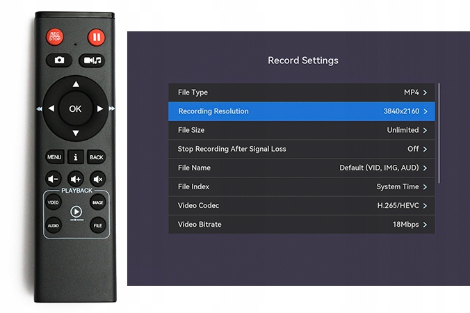 *Maksymalną rozdzielczością zapisu jest 4K30. Sygnały wejściowe 4K60 i 4K50 są akceptowane, ale mogą zostać zapisane jako 4K24, 4K25, 4K30.