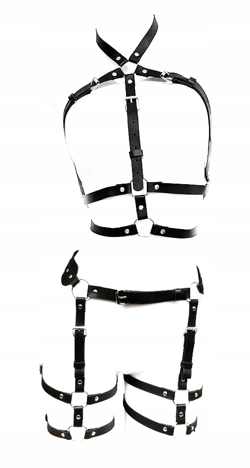 Materiał to skóra ekologiczna z metalowymi elementami.