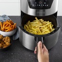 Frytkownica beztłuszczowa marki Princess wykorzystuje cyrkulację gorącego powietrza, dzięki czemu w prosty i szybki sposób przygotujesz zdrowe posiłki, które zachwycą nawet najbardziej wymagających członków rodziny. Urządzenie wyróżnia się mocą 1500 W i obsługuje aż 8 trybów pracy, w tym funkcję smażenia, grillowania i pieczenia, co daje możliwość przygotowania różnorodnych potraw, takich jak frytki, kurczak, ryby, warzywa, a także desery. Obudź swoją kreatywność, mieszaj składniki i zaskakuj innych swoimi potrawami!