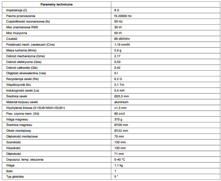 Przedmiotem jest 1 sztuka głośnika szerokopasmowego: