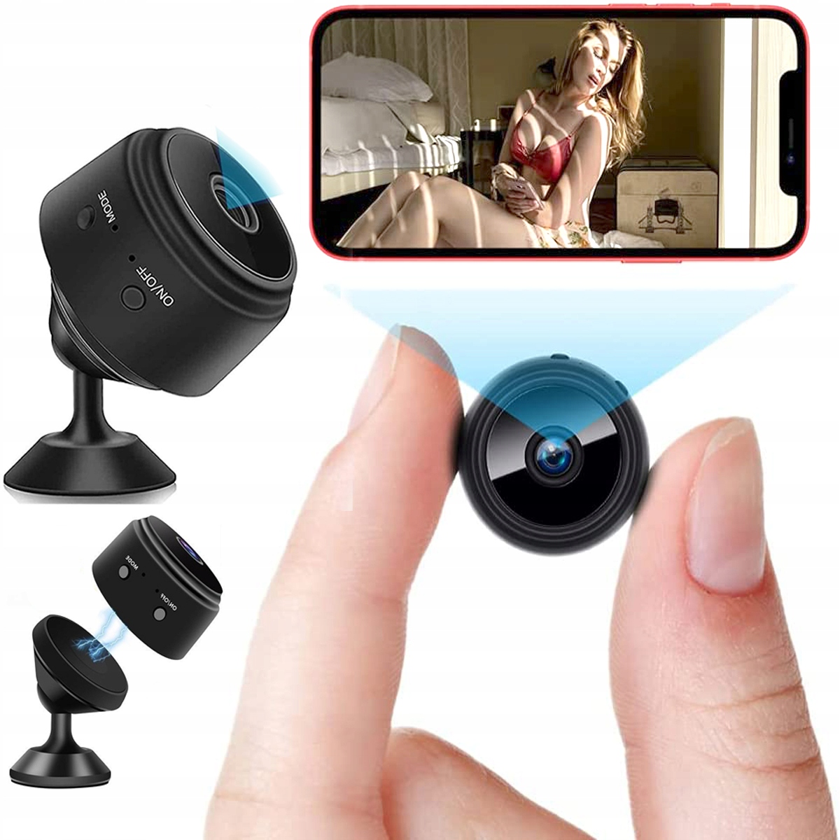 Kamera została wyposażona w magnes dzięki któremu w łatwy sposób przyczepisz ją do metalowych powierzchni, dodatkowo w zestawie znajduje się nóżka obrotowa 360 stopni, która dzięki mocnemu klejowi pozwoli umieścić kamerkę w dowolnym miejscu.