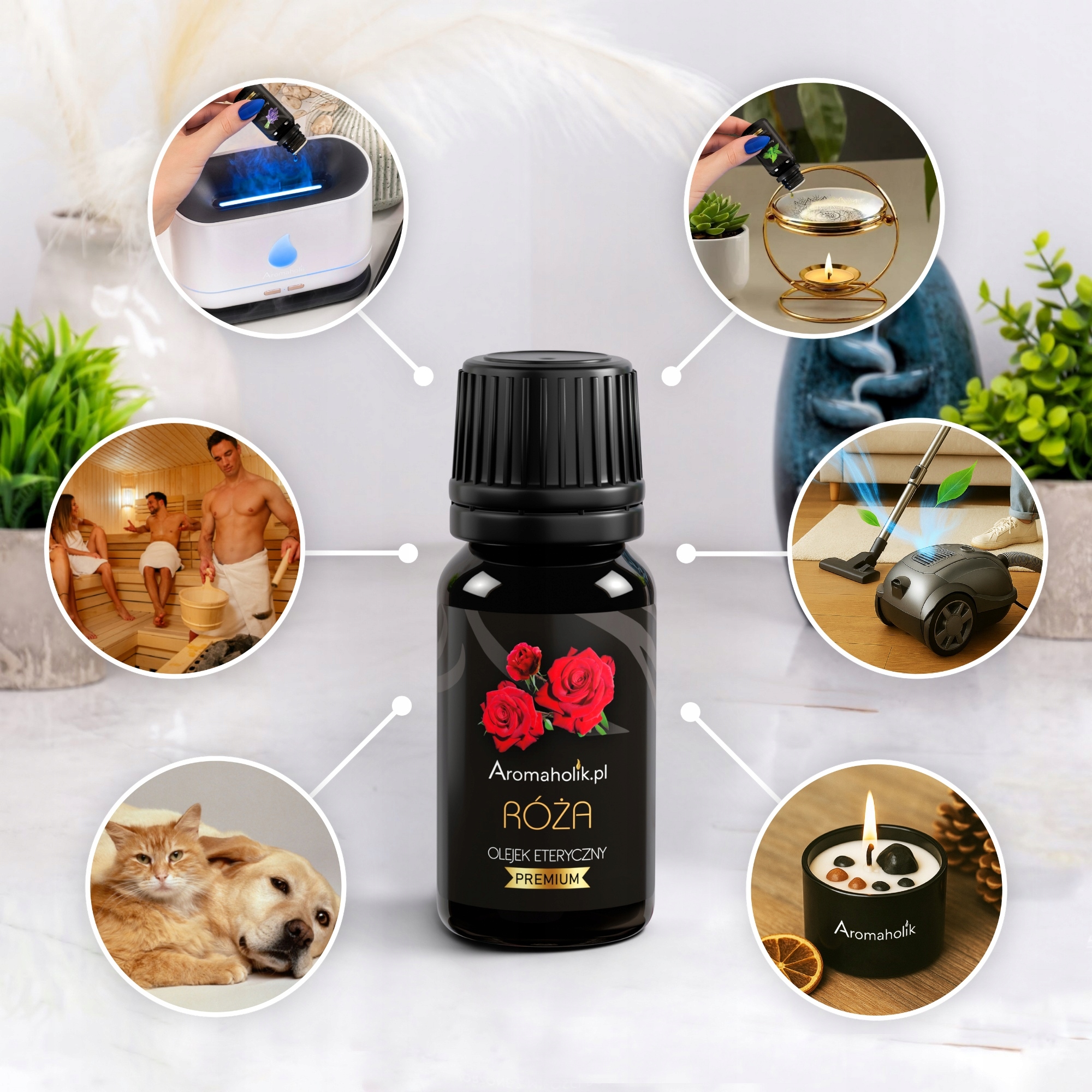 Olejki Aromaholik są pozyskiwane z naturalnych składników* drogą destylacji starannie wyselekcjonowanych Kwiatów Róży Damasceńskiej z Bułgarii – a nie drogą syntetyczną, jak większość olejków zapachowych. Posiadają wysoką koncentrację (50% większa niż standardowy olejek) oraz są całkowicie rozpuszczalne w wodzie.
