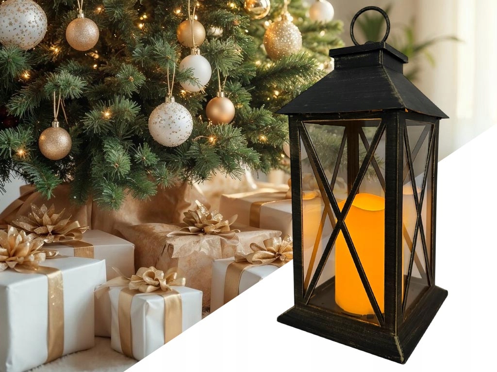 ŚWIĄTECZNA LATARNIA ZE ŚWIECĄ LED - IDEALNA DUŻA DEKORACJA ŚWIĄTECZNA DO DOMU, OGRODU