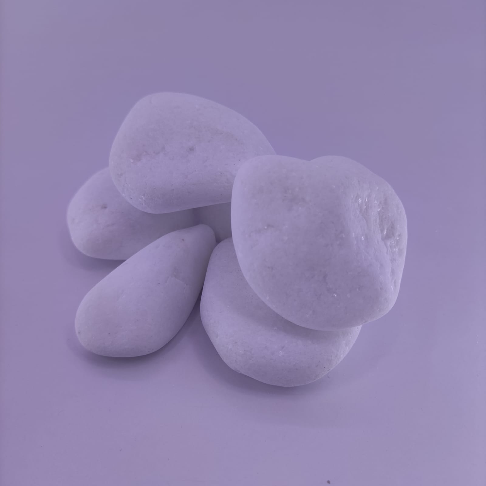 Otoczak Thasos Śnieżnobiały to kamień naturalny w kolorze białym z drobinkami mieniącymi się w słońcu.