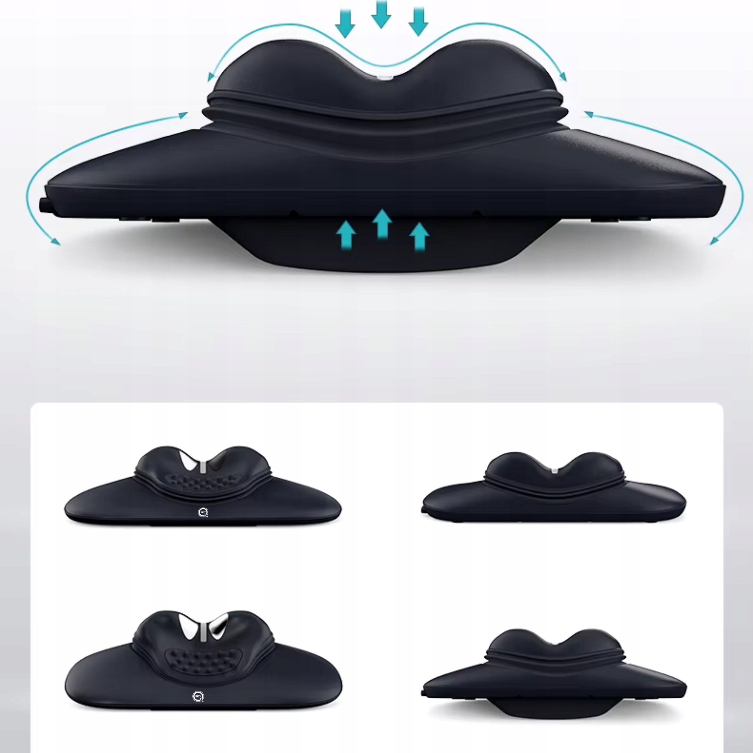 ✅ Trakcja kręgosłupa szyjnego – delikatnie rozciąga kręgi szyjne, redukując ucisk na nerwy i ból.