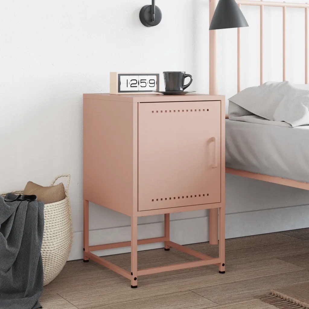 Industrialna szafka nocna w kolorze różowym