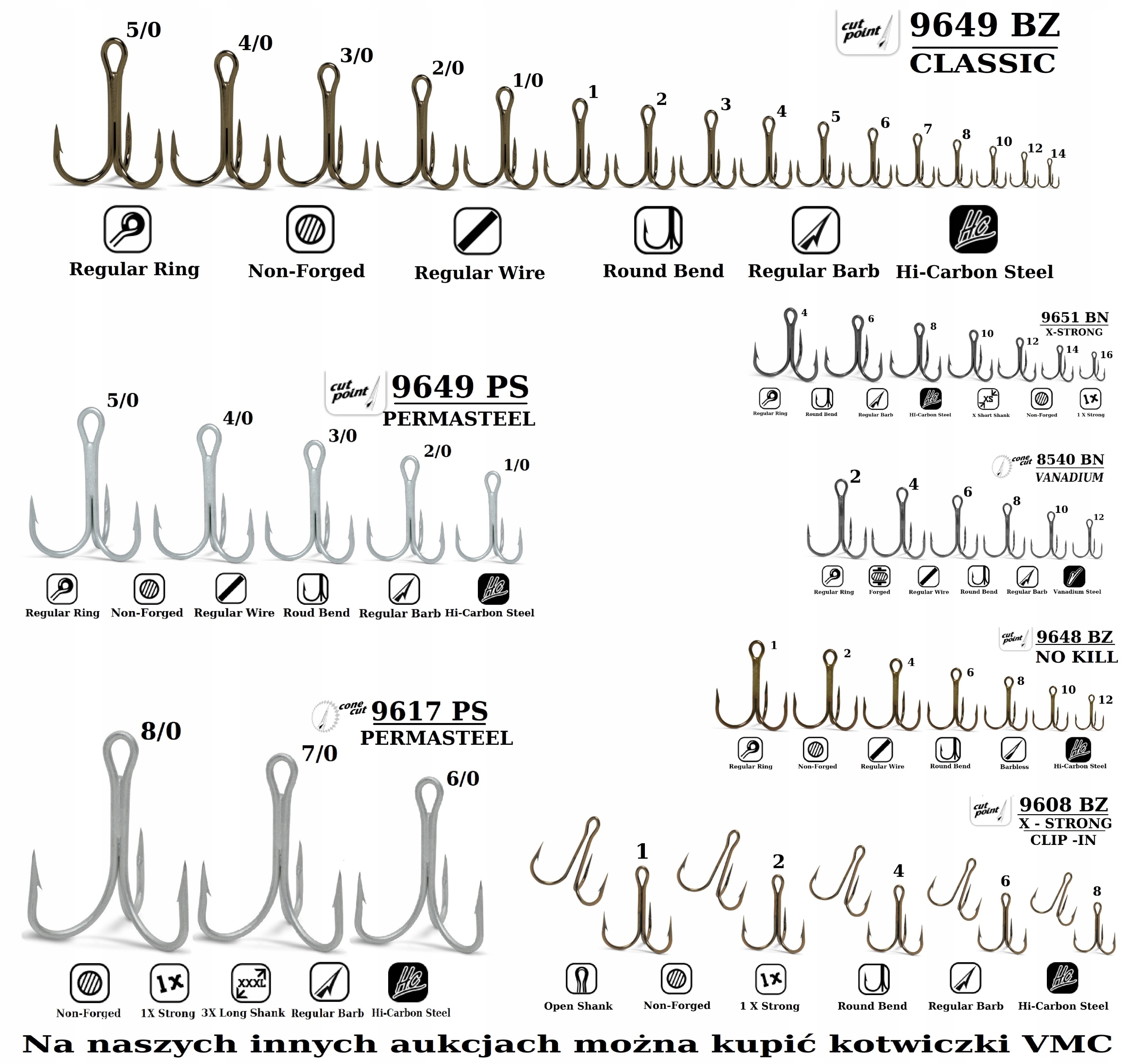 VMC® использует высококачественную высокоуглеродистую сталь для достижения более тонкий крючок с превосходным качеством и долговечностью