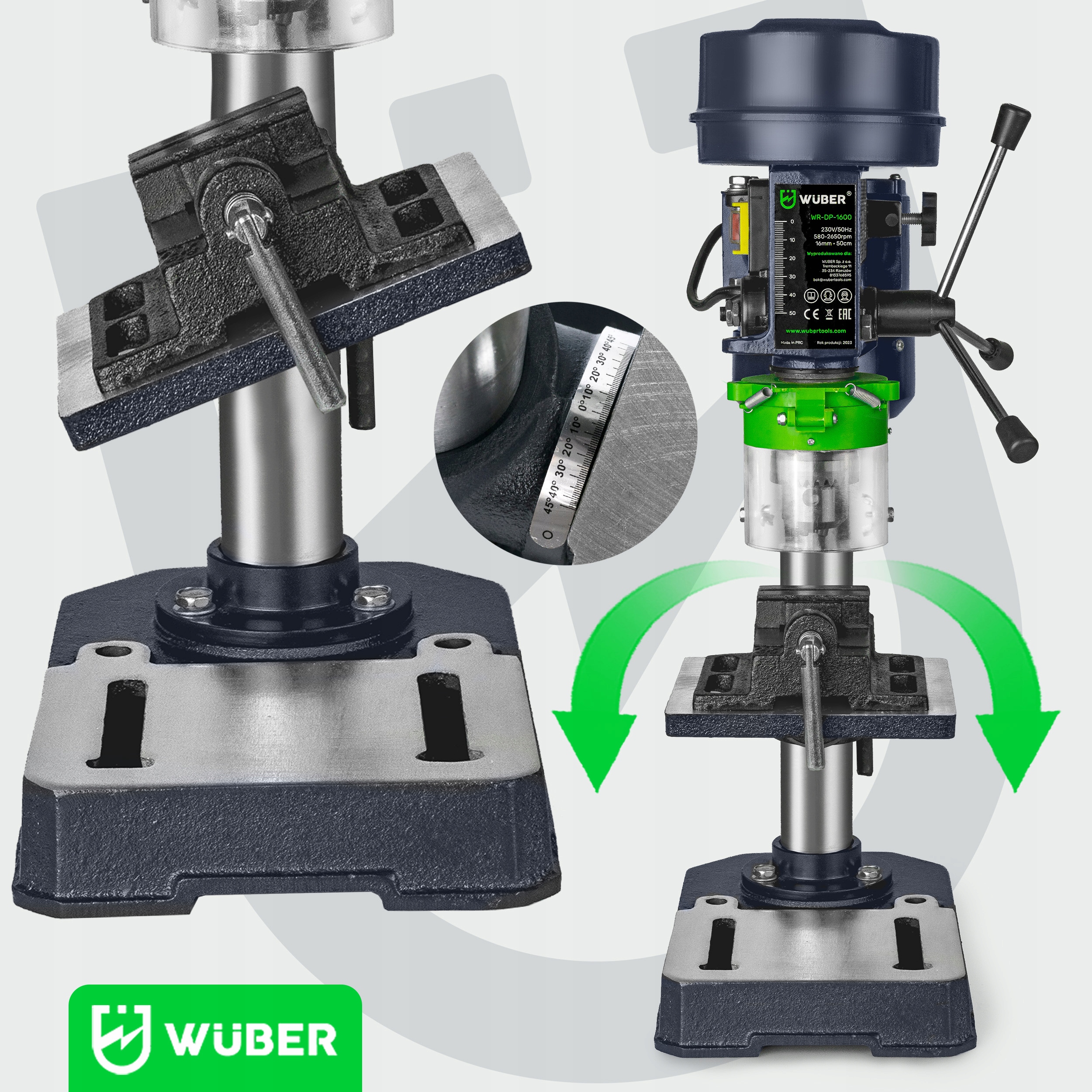 ✔️ Regulacja blatu w zakresie -45° do 45° znacznie zwiększa możliwości pracy z wiertarką stołową