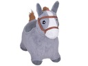 Konik wykonany jest z grubej gumy, powleczonej miękkim, pluszowym pokrowcem. Został wykonany bardzo estetycznie i z dbałością o detale takie jak wyszywane oczka, uzda czy miękkie, materiałowe siodło. Uwagę przyciąga również gęsta brązowa grzywa i ogon.