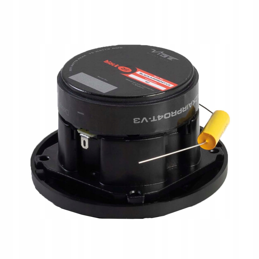 został zaprojektowany z myślą o ekstremalnej wydajności SPL, zapewniając wyraźne wysokie tony nawet przy najwyższych poziomach głośności. Ten kompresyjny głośnik wysokotonowy z tytanową membraną i czułością 107 dB zapewnia imponujący poziom dźwięku. Magnes ferrytowy o masie 20 uncji i moc szczytowa 225 W sprawiają, że ten głośnik wysokotonowy jest idealny do zastosowań na zawodach i dla każdego, kto chce osiągnąć maksymalne ciśnienie akustyczne. Obrabiana CNC aluminiowa konstrukcja w kolorze czarnym doskonale pasuje do linii produktów BlackAir i zapewnia zarówno estetykę, jak i wydajność.